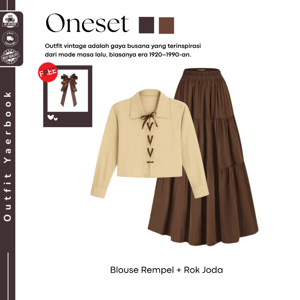 Outfit Viral Yearbook (Belt Besar + Fara Blouse + Rok Susun) OOTD Yearbook Remaja Vintage - FO50