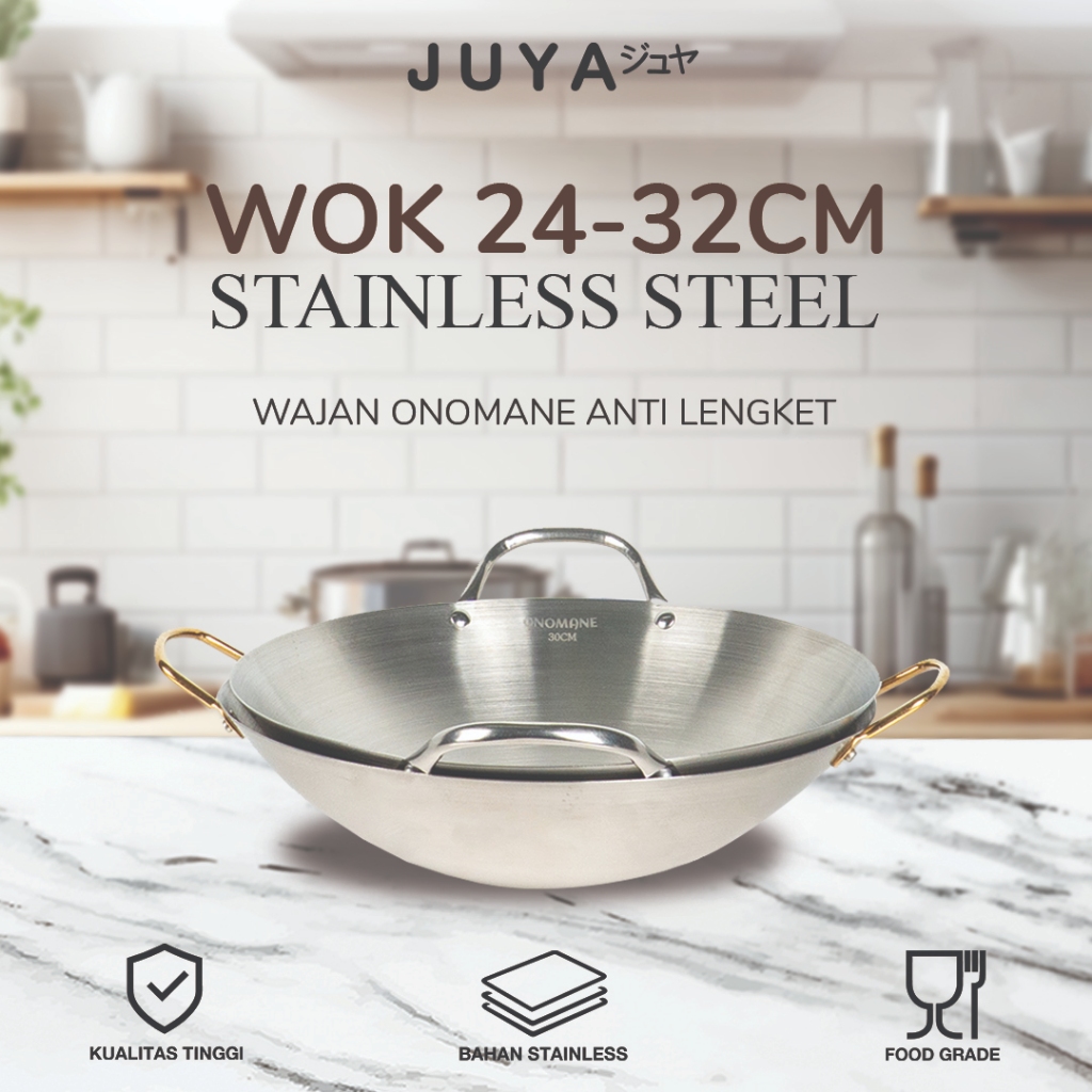 Onomane Wajan/Kuali Mini Stainless Gagang Silver / Gagang Gold Ukuran 24cm - 32cm Stainless Termurah