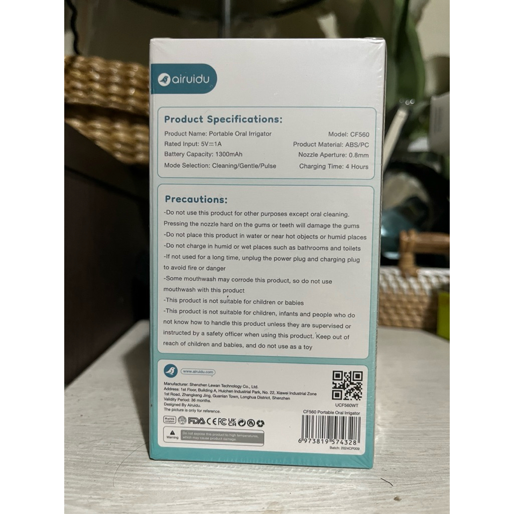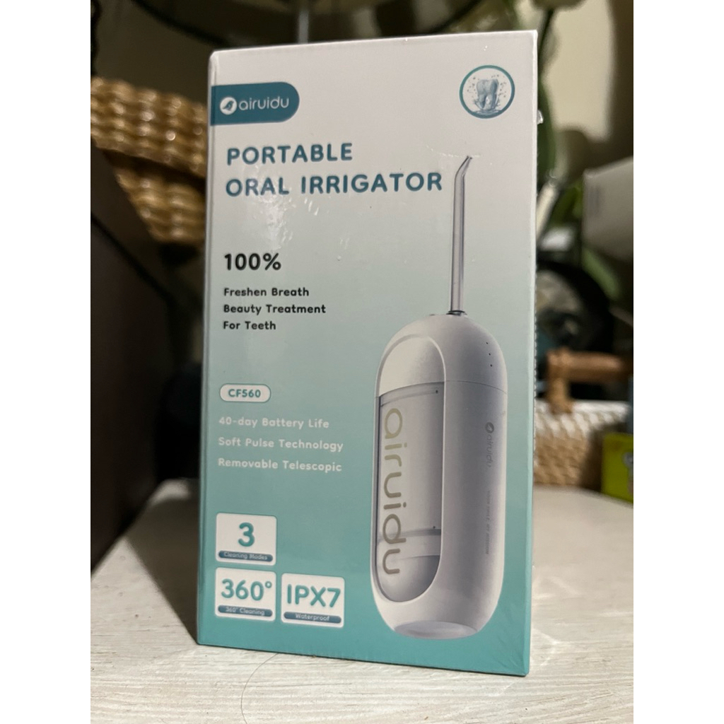 Airuidu 150ML Water Flosser CF560 Pembersih Karang Gigi (3 mode + 4 nozel) IPX7 Waterproof Mini Water Floss Electric Oral Lrrigator Portable Pembersih Gigi for Travel