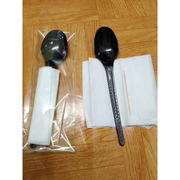 SENDOK HITAM MAKAN SET SENDOK STERIL SENDOK SET PREMIUM HIGENIES BUNGKUS PLASTIK