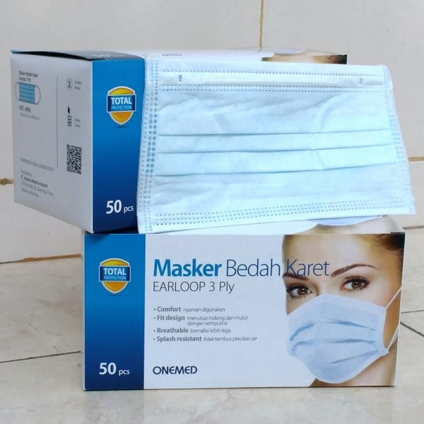 Masker Bedah Karet 3ply Onemed (earloop) - Isi 50