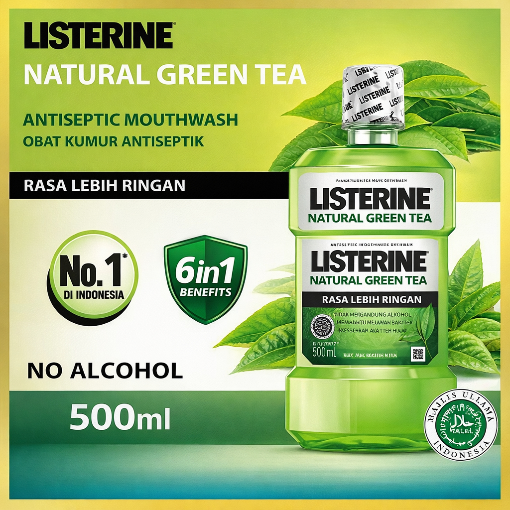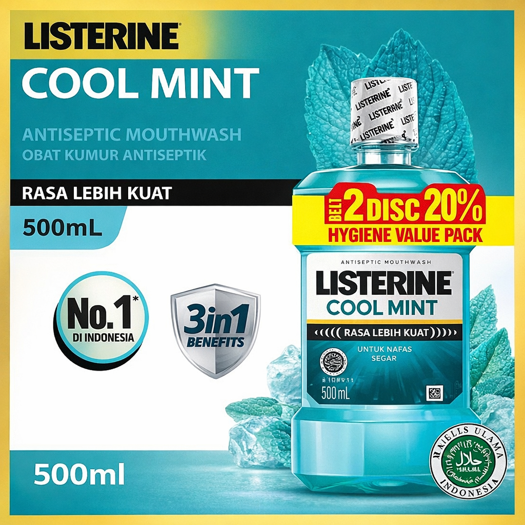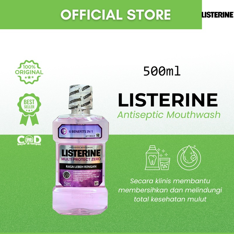Listerine 500ml Cool Mint Antiseptic, Mouthwash, atau Obat kumur antiseptik 500ml listerine fresh burst listerine green tea