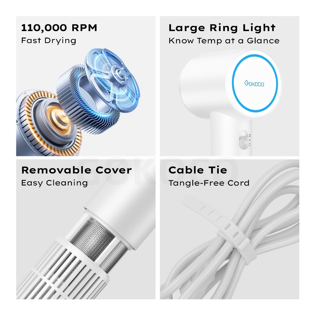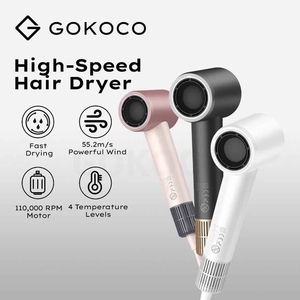GOKOCO Mini High Speed Hair Dryer 1,52 miliar Negative Ion Quick Dry 110,000 rpm portable hair dryer
