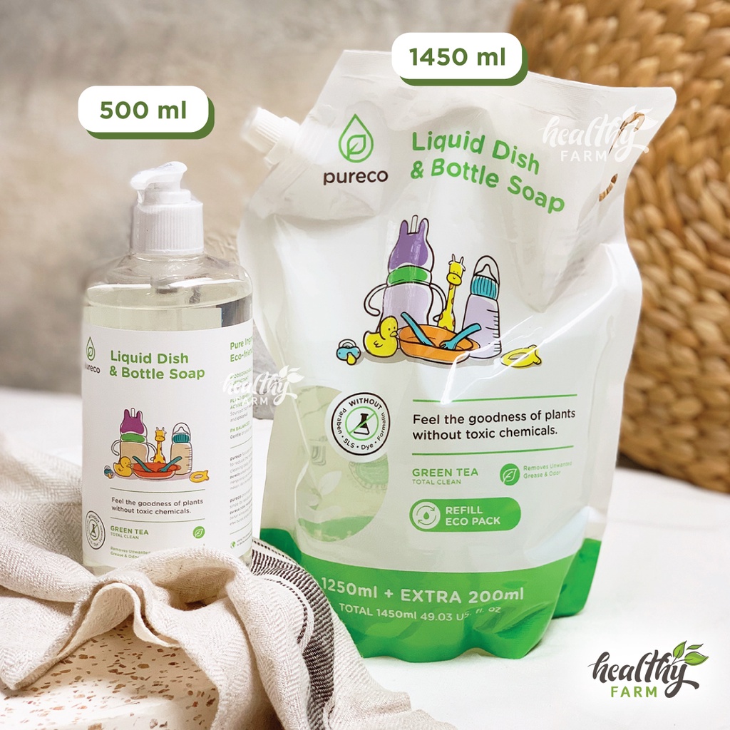 Pureco Refill Liquid Dish & Bottle Soap / Sabun Cuci Piring Botol Bayi 900ml