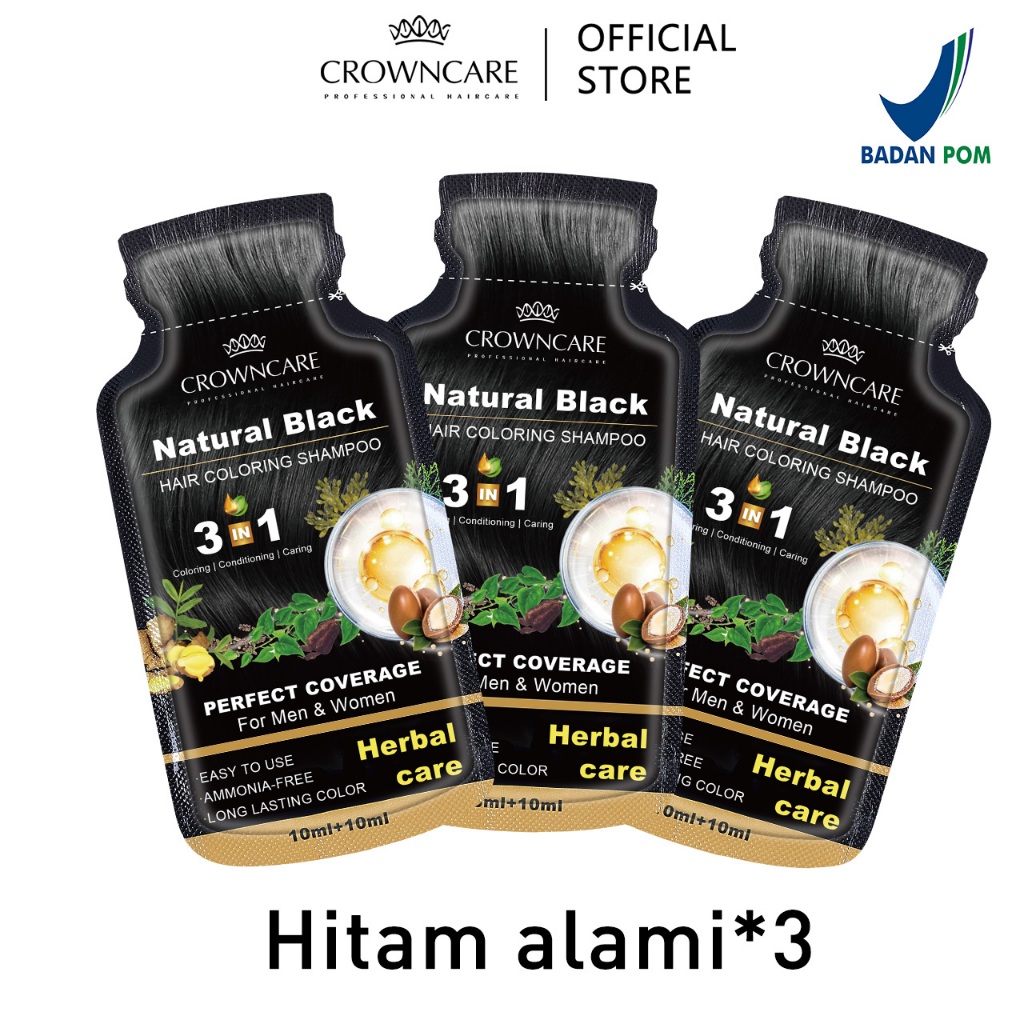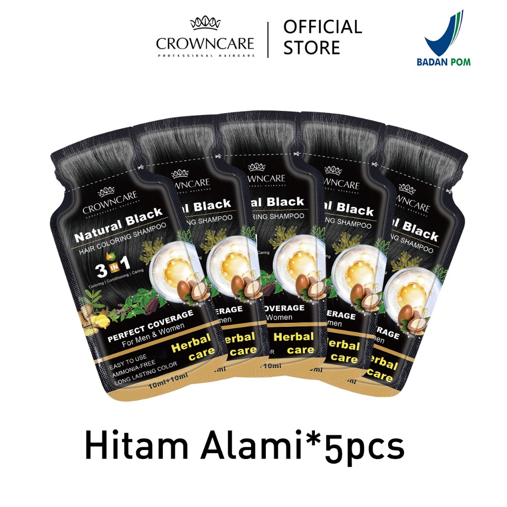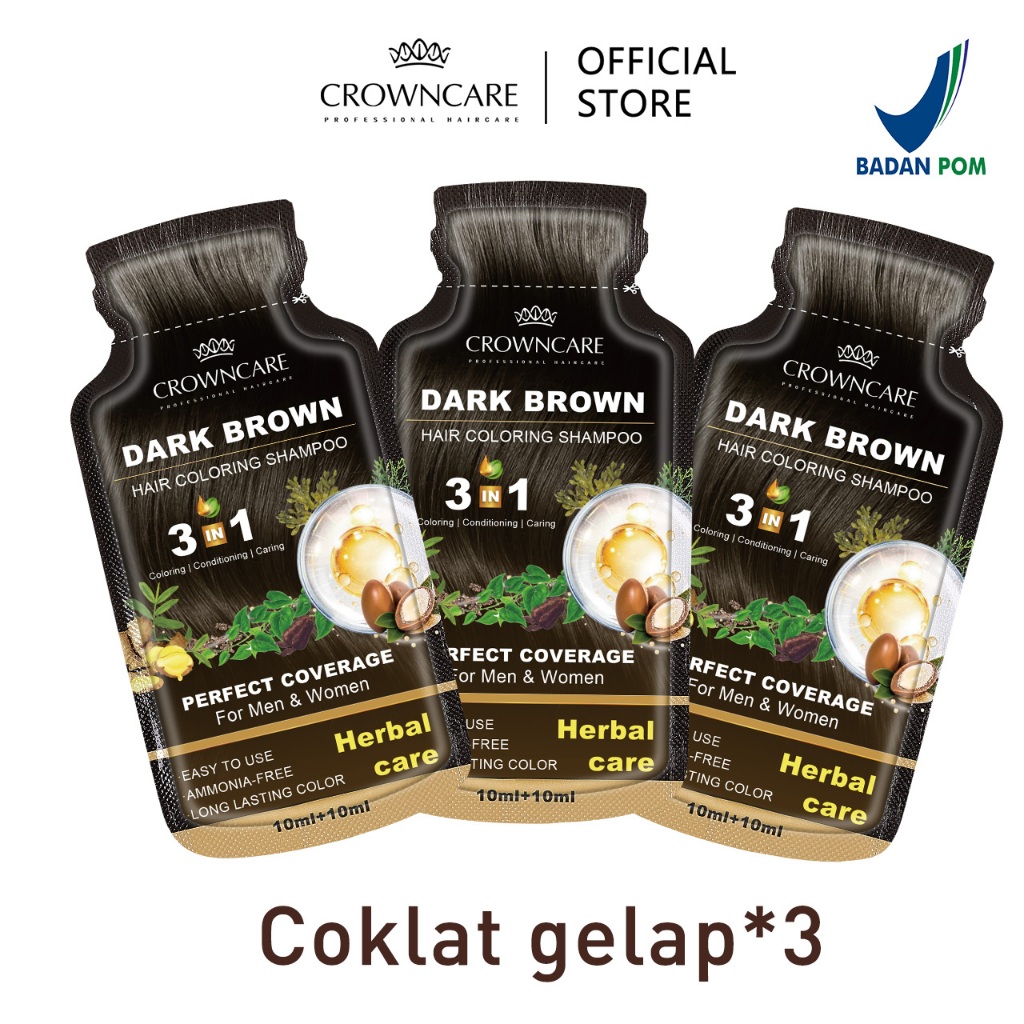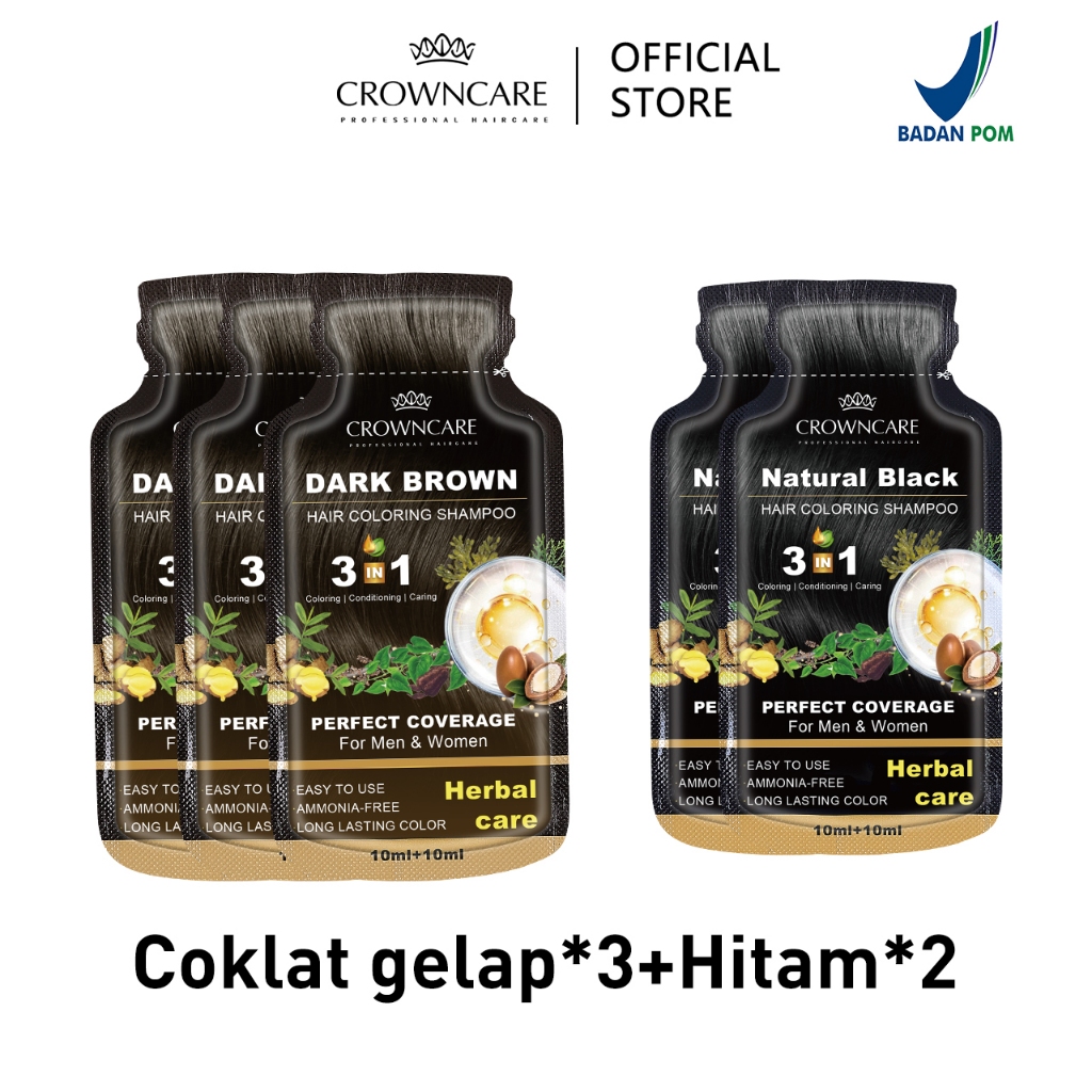Crowncare Bubble Hair Color Foam Cat Pewarna Rambut | Pewarna Rambut Herbal Tanpa Alergi, Hair Dye - Perawatan /Treatment Rambut Hitam alami & Coklat gelap 20ml/Sachet