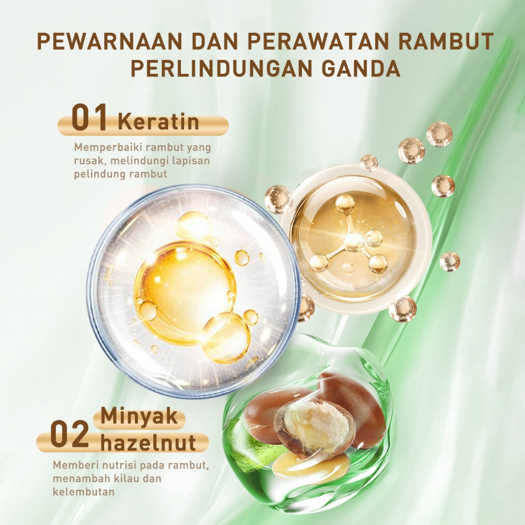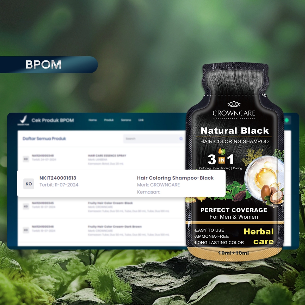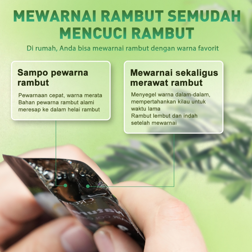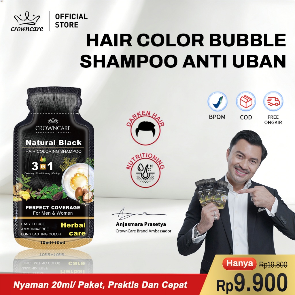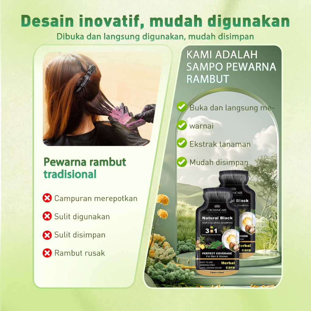Crowncare Bubble Hair Color Foam Cat Pewarna Rambut | Pewarna Rambut Herbal Tanpa Alergi, Hair Dye - Perawatan /Treatment Rambut Hitam alami & Coklat gelap 20ml/Sachet
