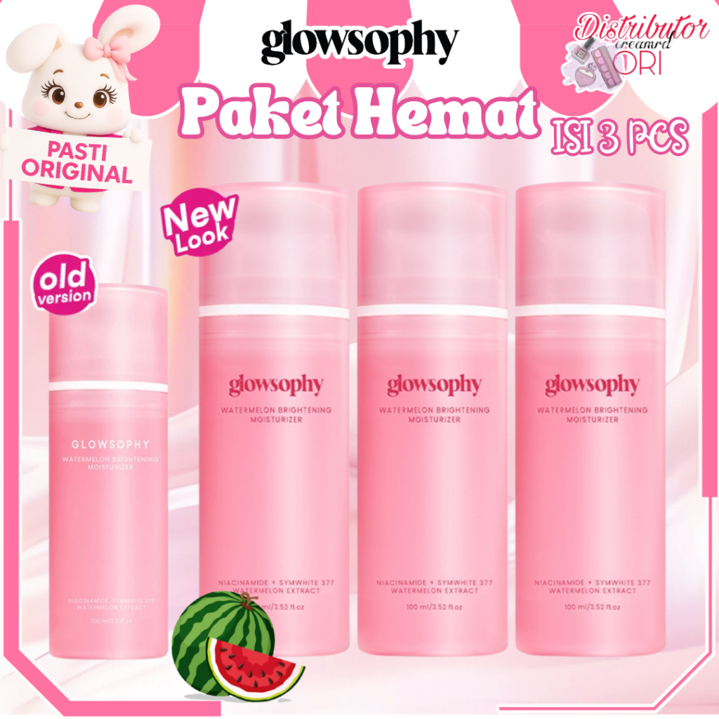 [ PAKET ISI 3 PCS ] Glowsophy Watermelon Brightening Moisturizer - CICA Panthenol Soothing 100ML | Distributor Cream Ori