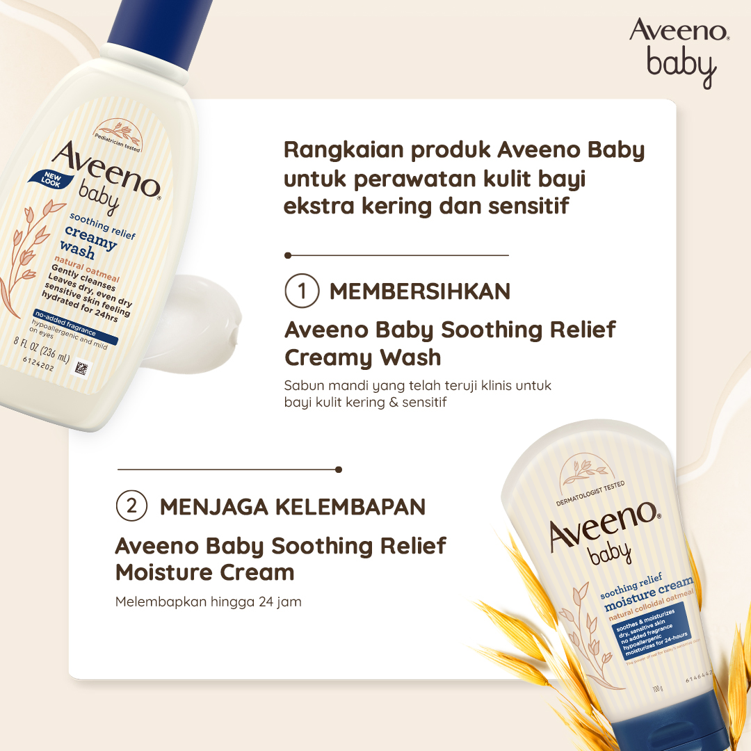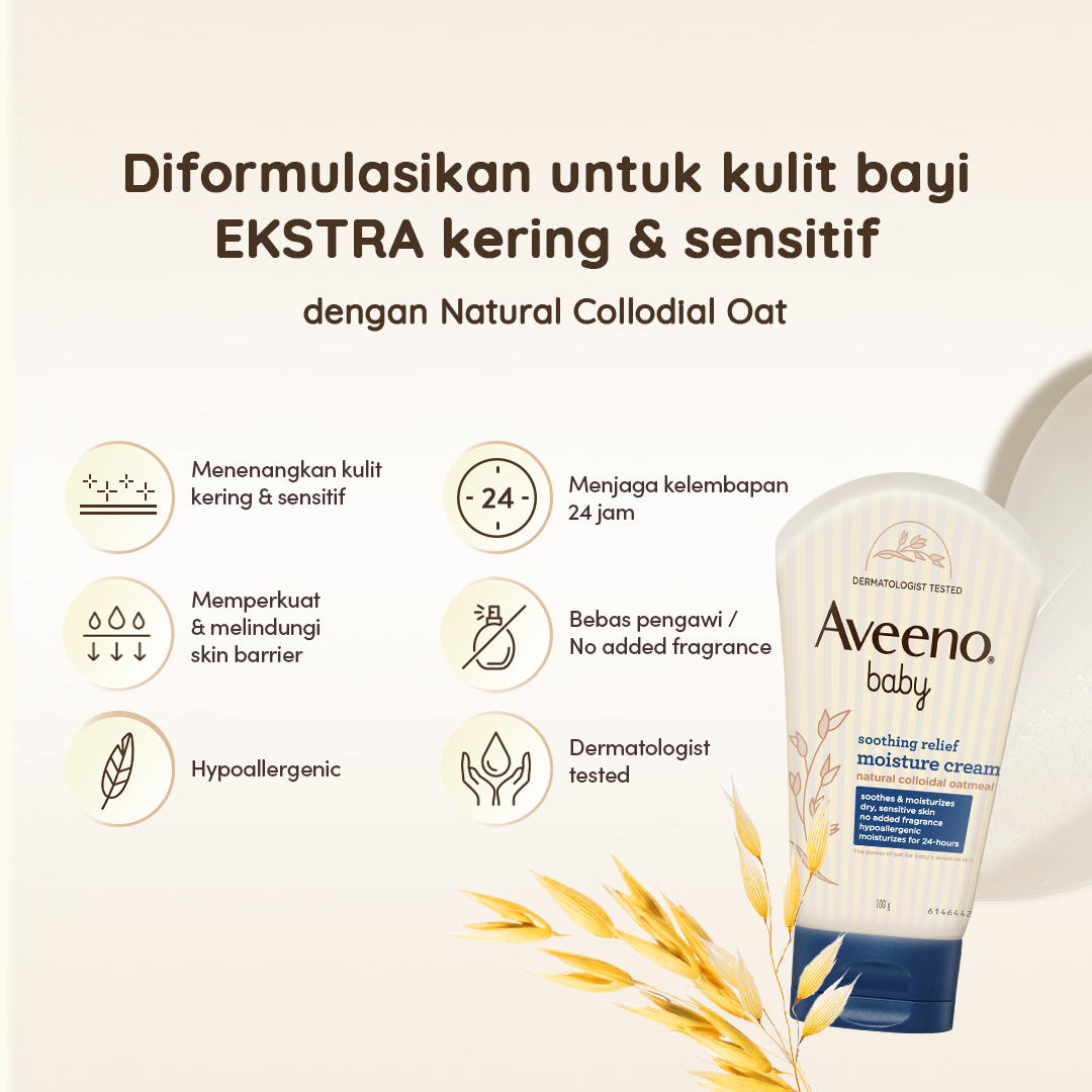 Aveeno Baby Soothing Relief Moisture Cream 100 gr - Lotion Pelembap Kulit Bayi Kering & Sensitif hingga 24 jam