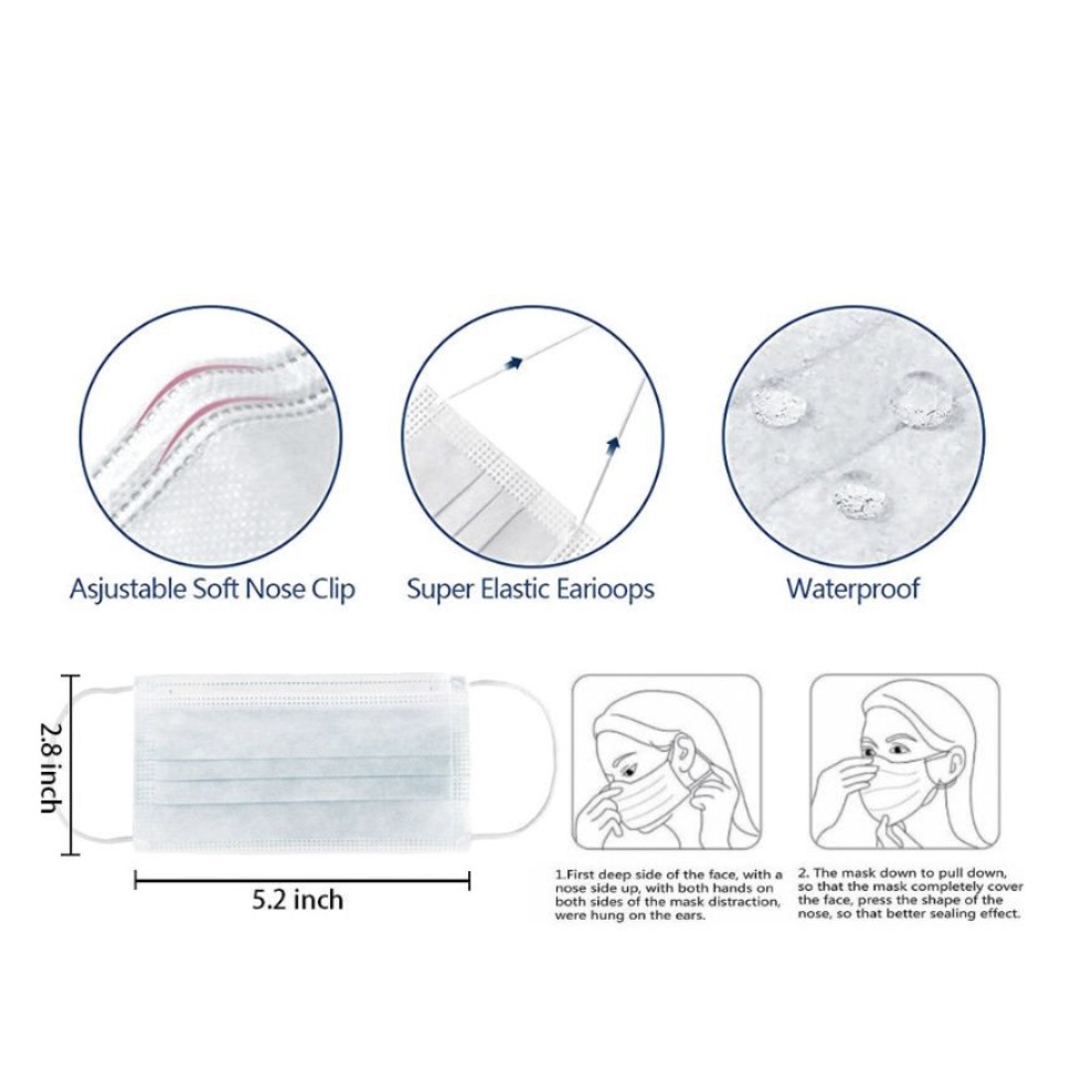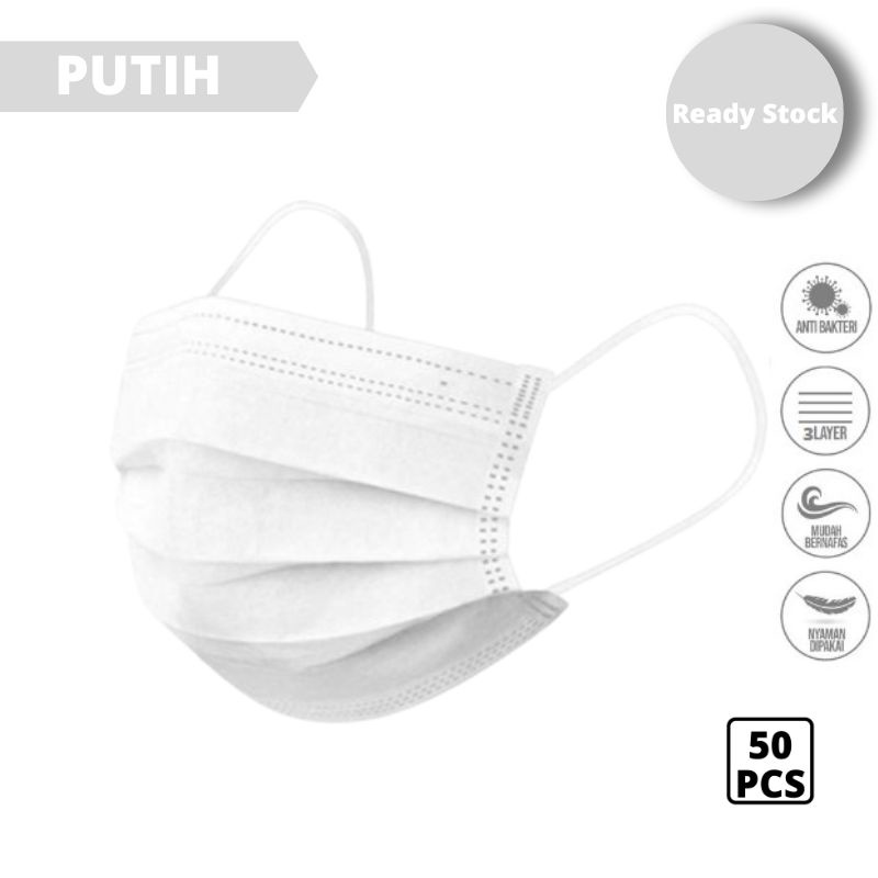 Masker 3Ply PUTIH Full Import isi 50pcs Disposable Facemask JM