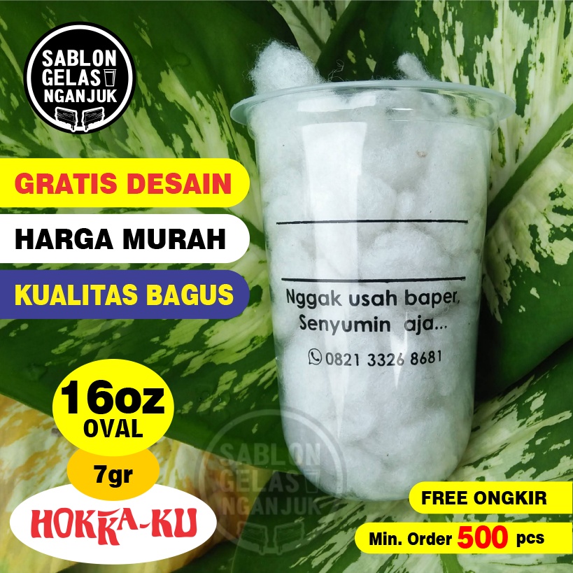 Sablon Gelas Cup Oval 16 oz murah, Gratis Desain