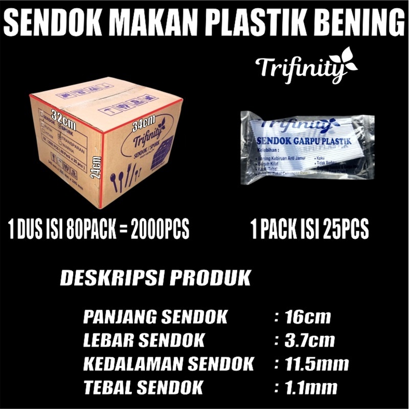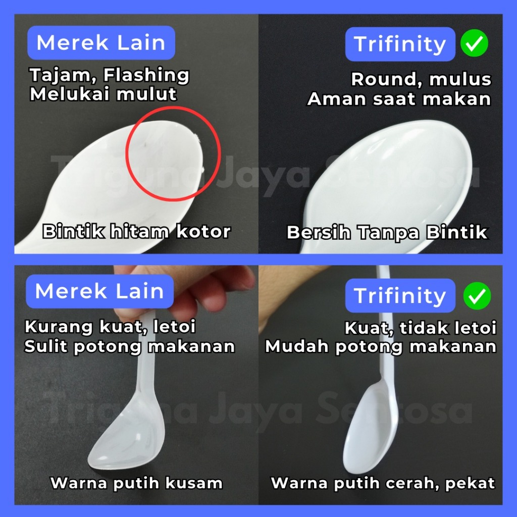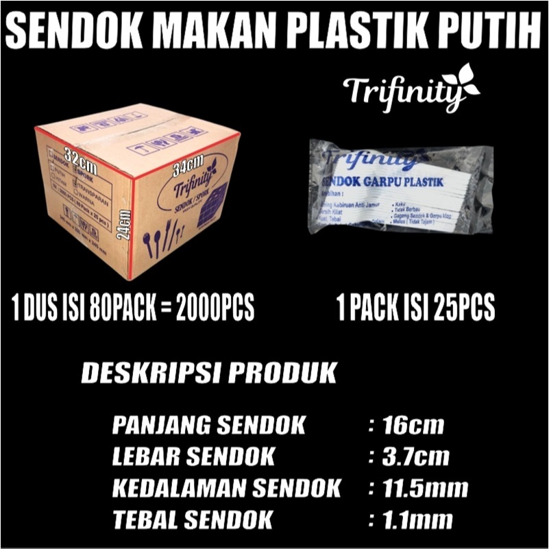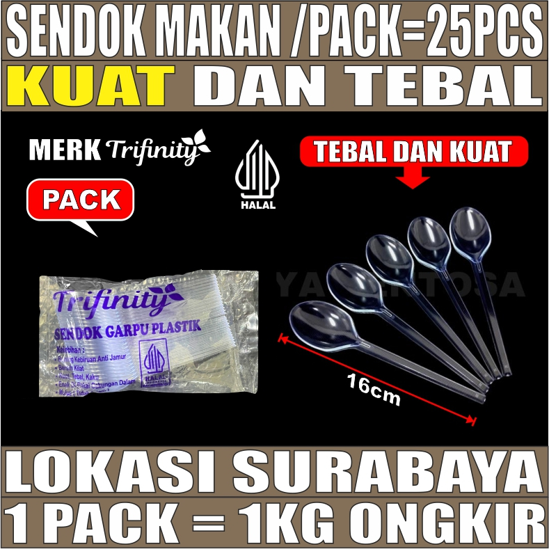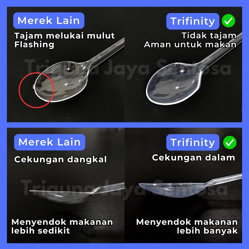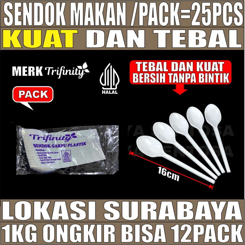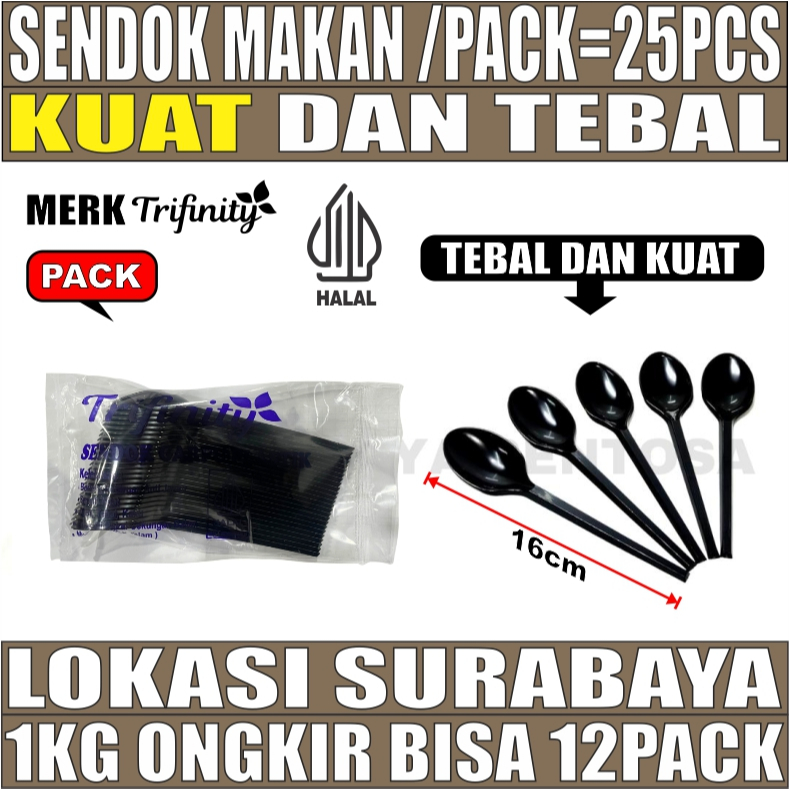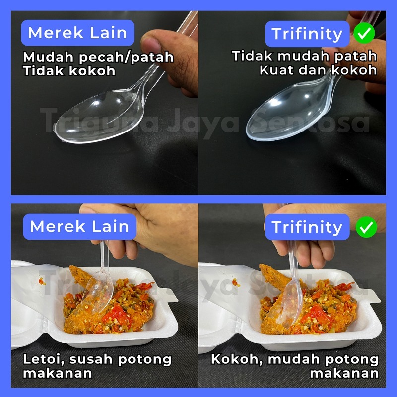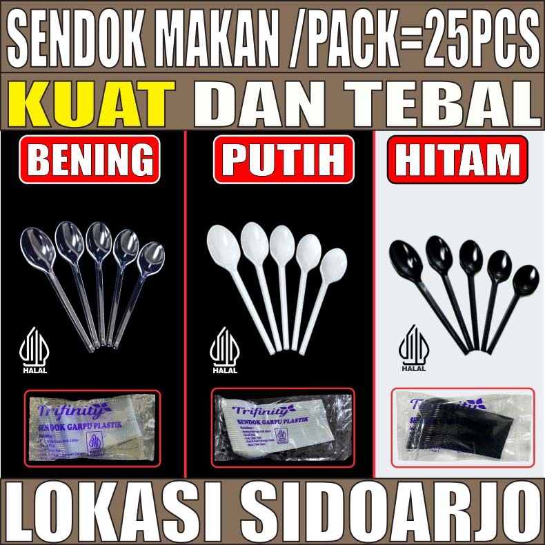 Sendok Makan Plastik HALAL Kuat Tebal Panjang Bening / Hitam / Putih Trifinity Per Pack Var SBY
