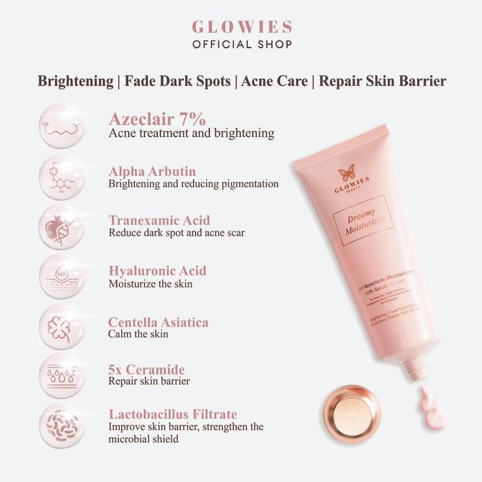 GLOWIES BEAUTY Dreamy MoisturIzer 80ml 7% Azeclair Niacinimide | Pelembab wajah Formulasi Korea