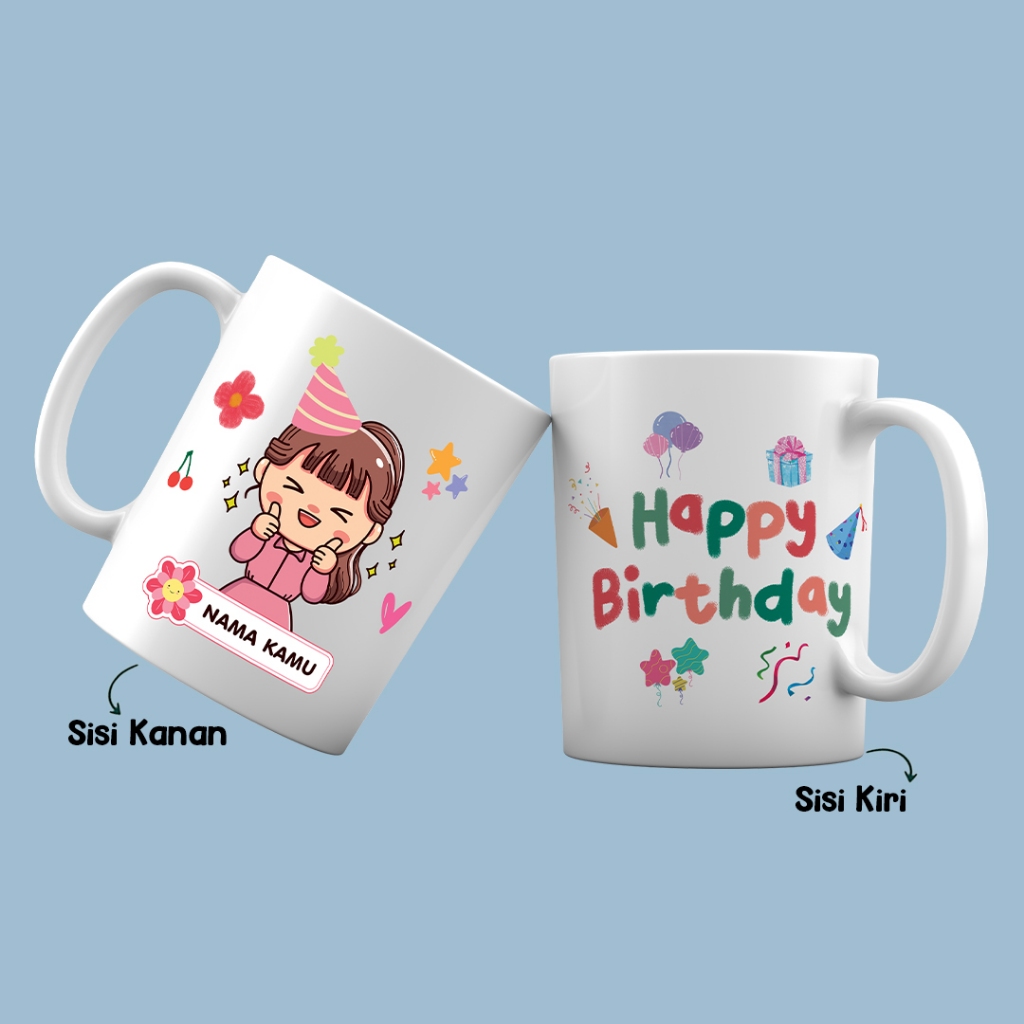HAPPY BIRTHDAY / CETAK CUSTOM MUG SELAMAT ULANG TAHUN / SOUVENIR GELAS ULTAH / KADO ULANG TAHUN GIFT TUMBLER