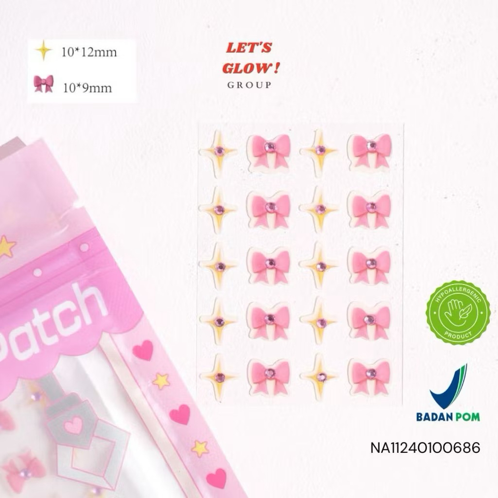 BPOM COQUETTE STIKER JERAWAT HYDROCOLLOID ACNE PIMPLE PATCH MOTIF PITA DAN SPARKLE LETS GLOW GROUP