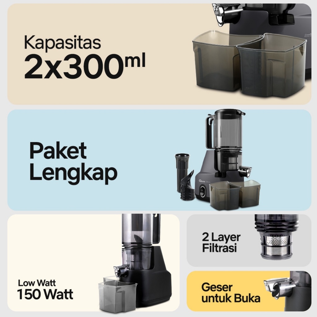 Oxone OX874N Classic Slow Juicer - Slow Juicer Buah 95% Nutrisi Terjaga | Cold Press Juice | Zero Metal | 150W