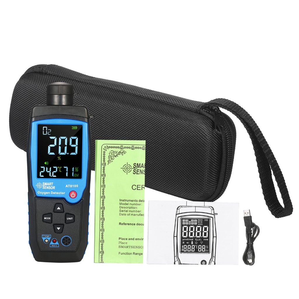 Oxygen Detektor SMART SENSOR Pengukur Oxygen Genggam Digital, Detektor Oksigen genggam LCD USB dapat diisi ulang otomotif O2 Sensor Tester Monitor Gas
