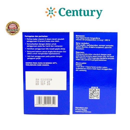 Oxyvit Vitamin D3 1000 Iu isi 60 Softgel/Daya Tahan Tubuh/Suplemen Tulang/Vitamin D