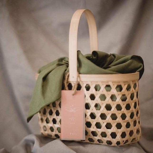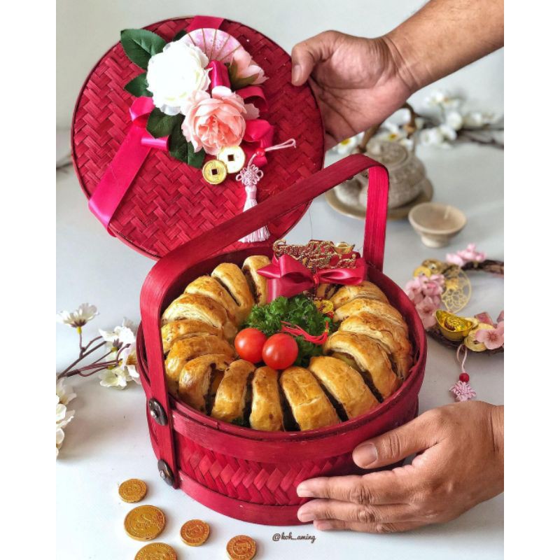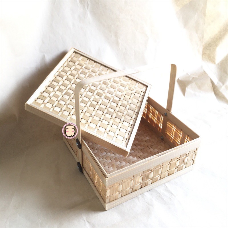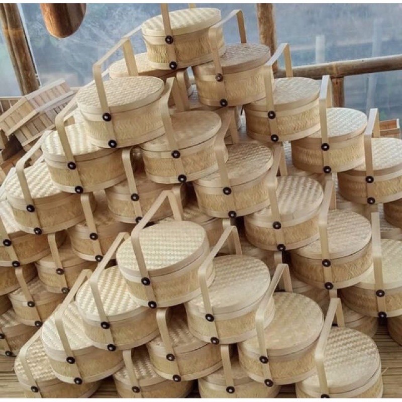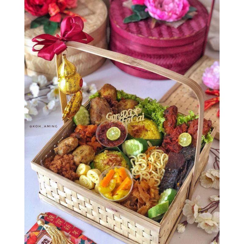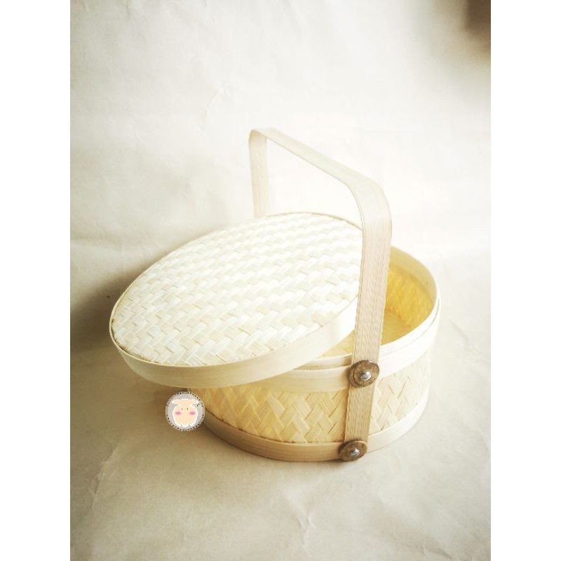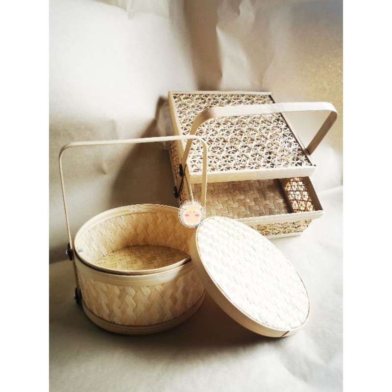 PACKAGING HAMPERS LEBARAN Bambu / Rantang Bambu Bulat Anyaman Full / Keranjang Bambu