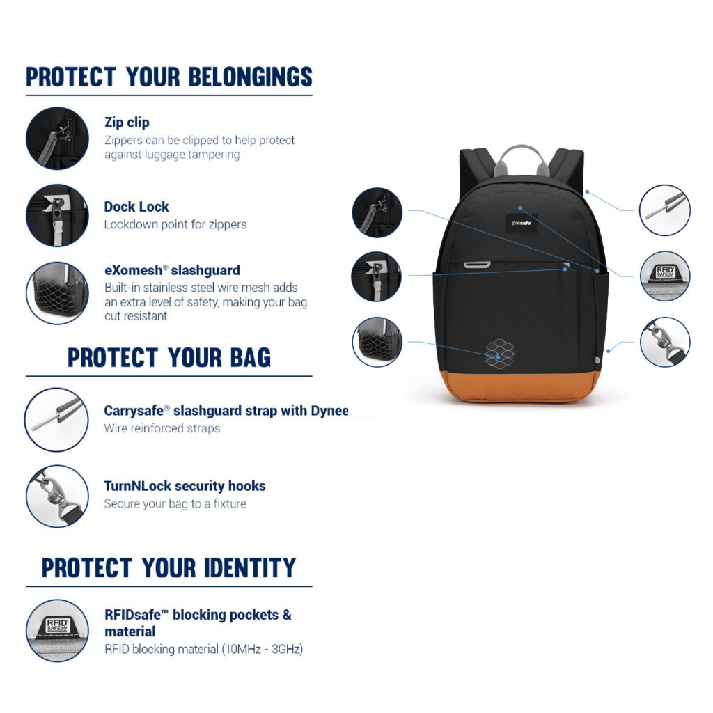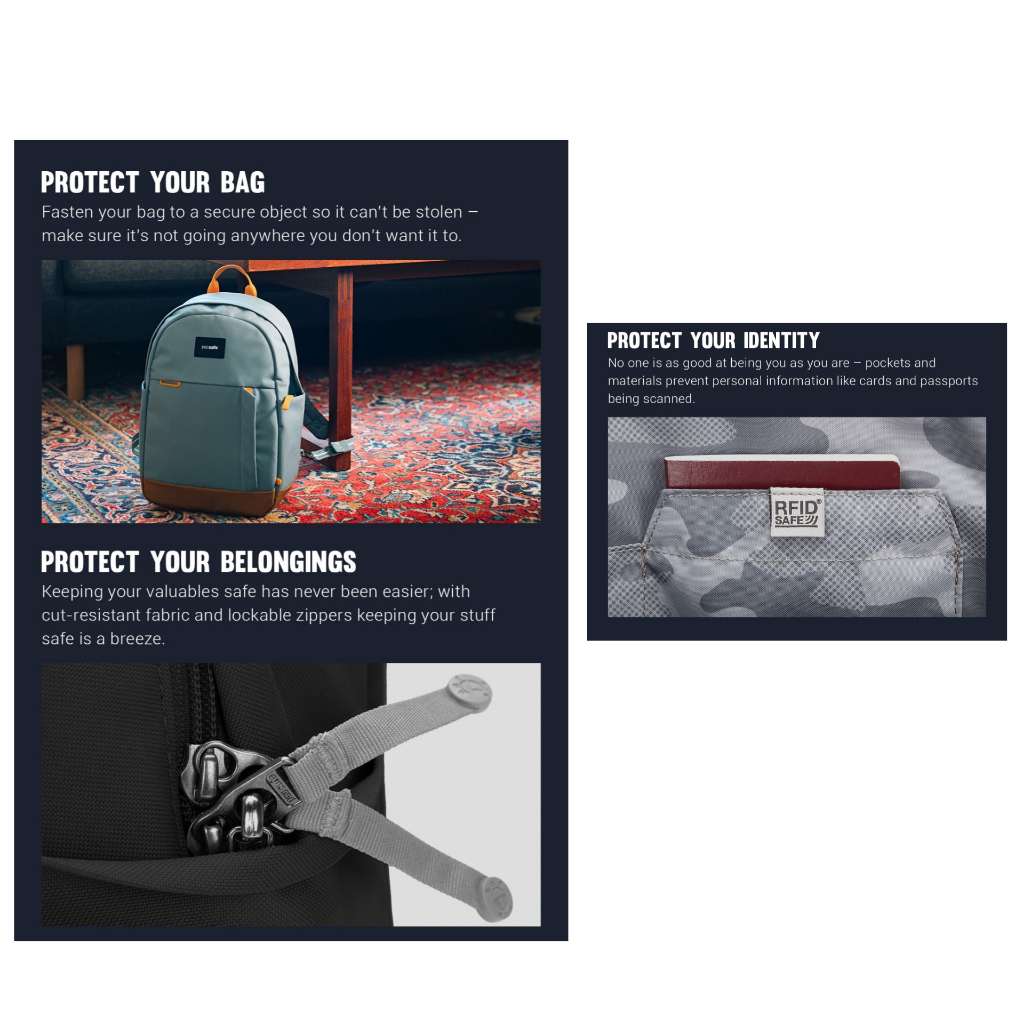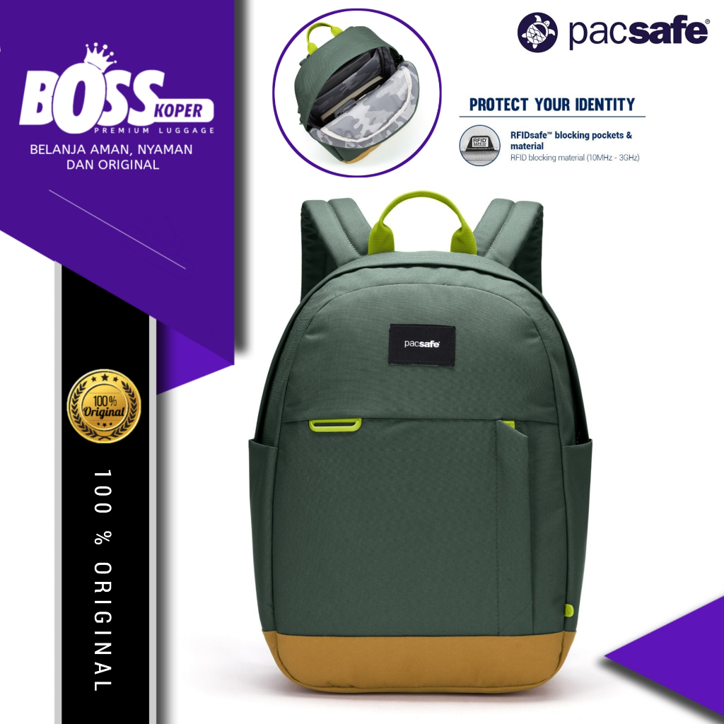 PACSAFE ransel traveling backpack small unisex RFID protection identity passport