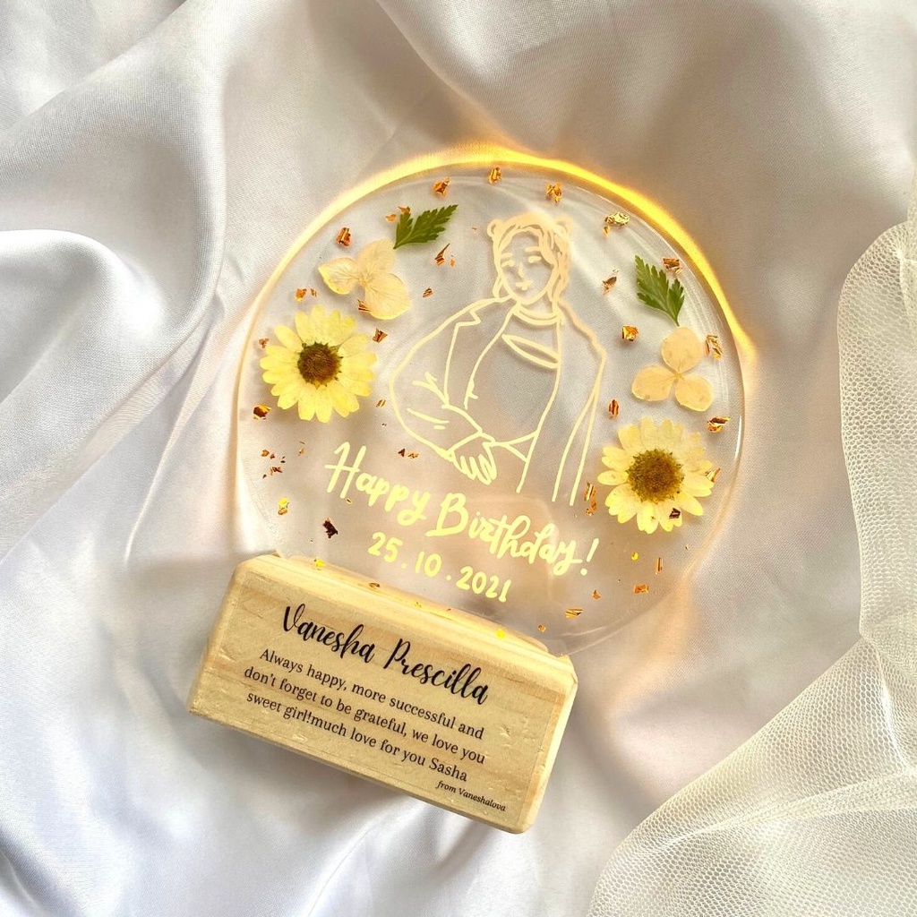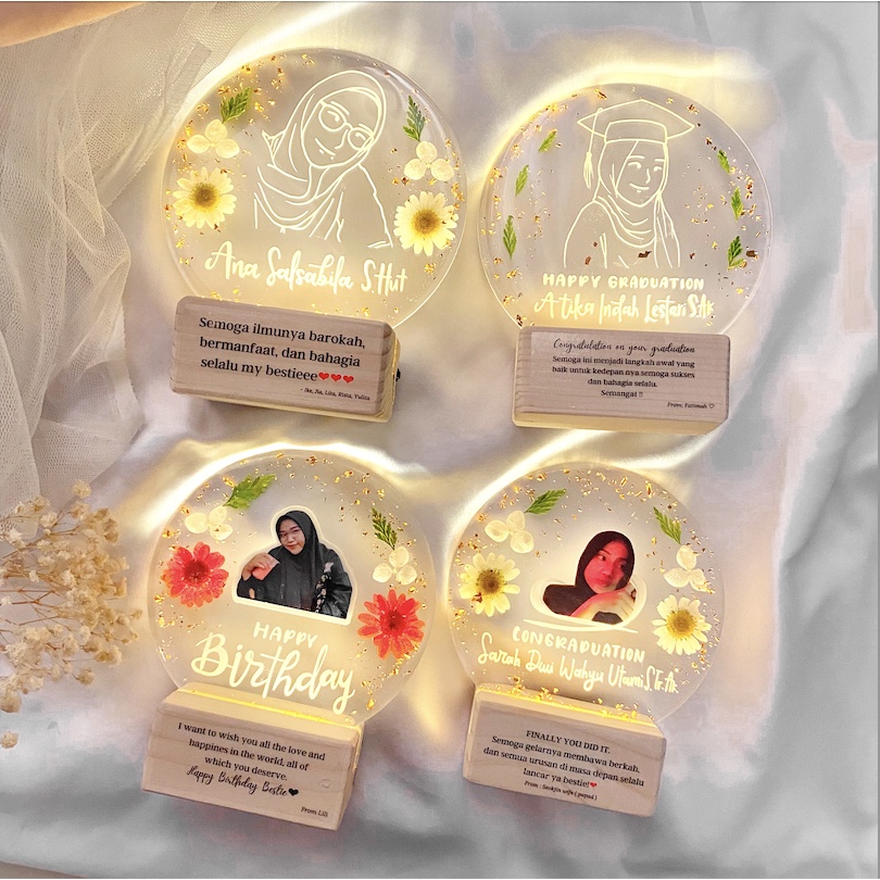 Kado Bingkai Foto Custom LED Small Ulang Tahun Wisuda Wedding Anniversary Akrilik