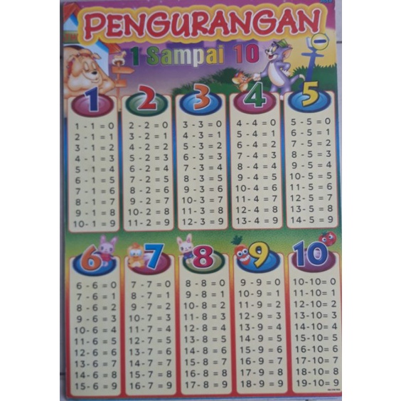 PAKET (8) POSTER, PERKALIAN, PENJUMLAHAN , PENGURANGAN, PEMBAGIAN DAN JARIMATIKA.(8 POSTER)