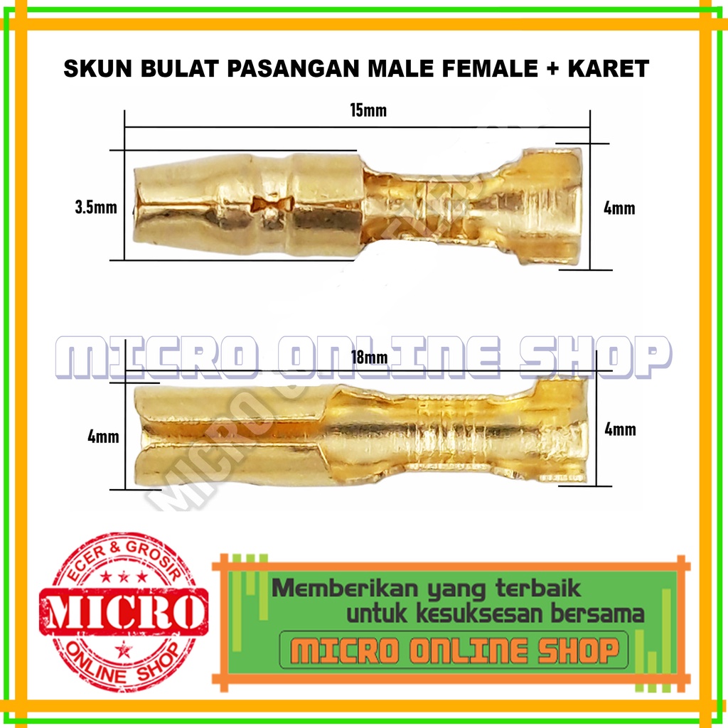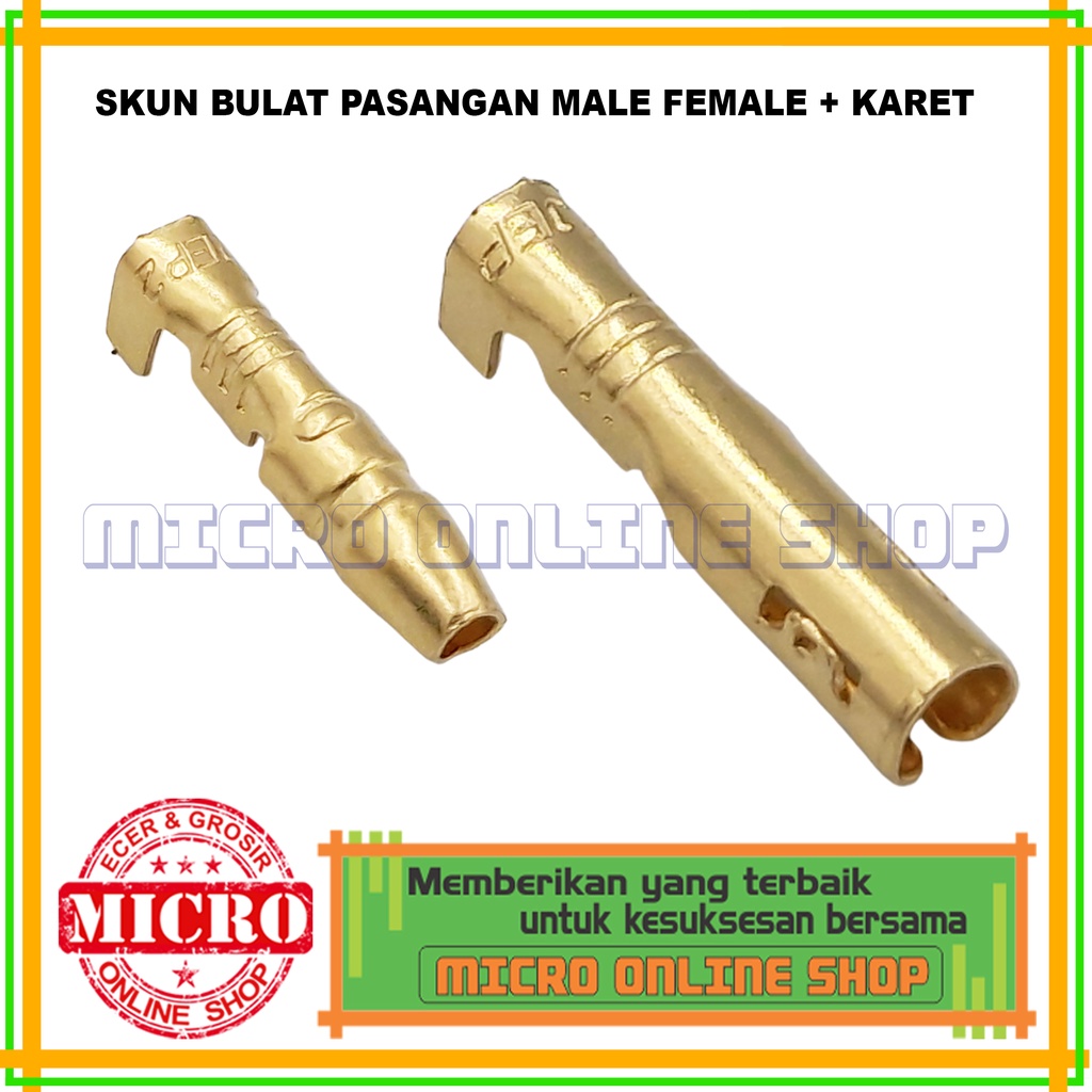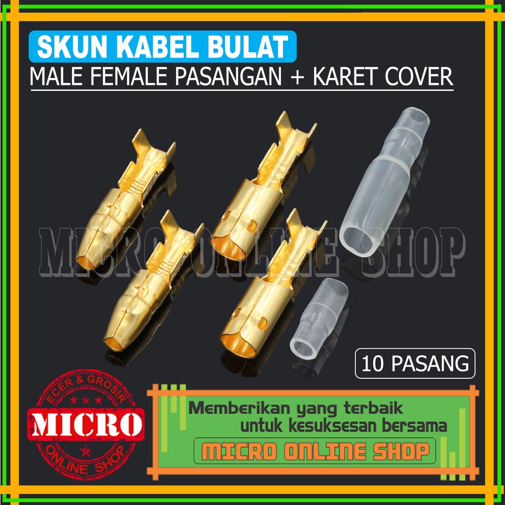 PAKET 10 PCS Skun Kabel Connector Male Female Bulat + Karet Kondom / Skun Kabel motor