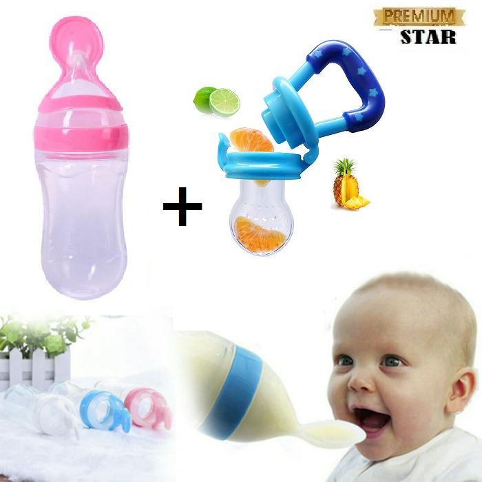 PAKET 2 IN 1 PROMO Botol Sendok Makan Bayi + Dot Bayi / Dot Buah - Warna Random
