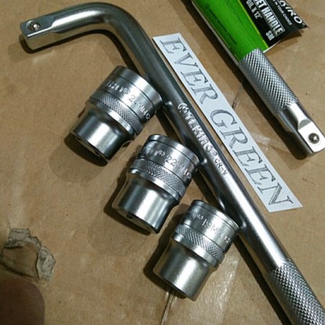 PAKET 4 pcs Gagang Stang Dan Mata Kunci Sok 4 Pcs TEKIRO Kunci Shock No. 19 22 24 mm Gagang Sok L dan Mata Kunci Shock