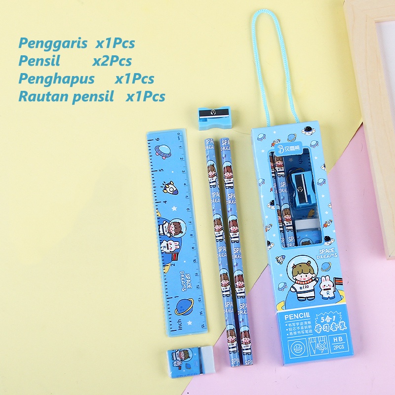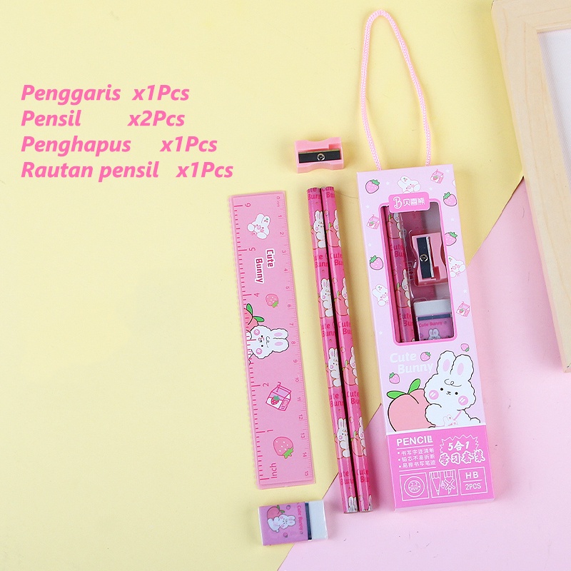 PAKET ALAT TULIS 5 IN 1 / ALAT TULIS SET 5 IN 1 / PERLENGKAPAN MENULIS, PAKET MURAH