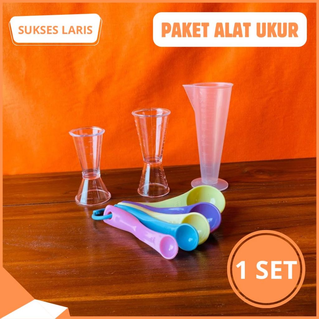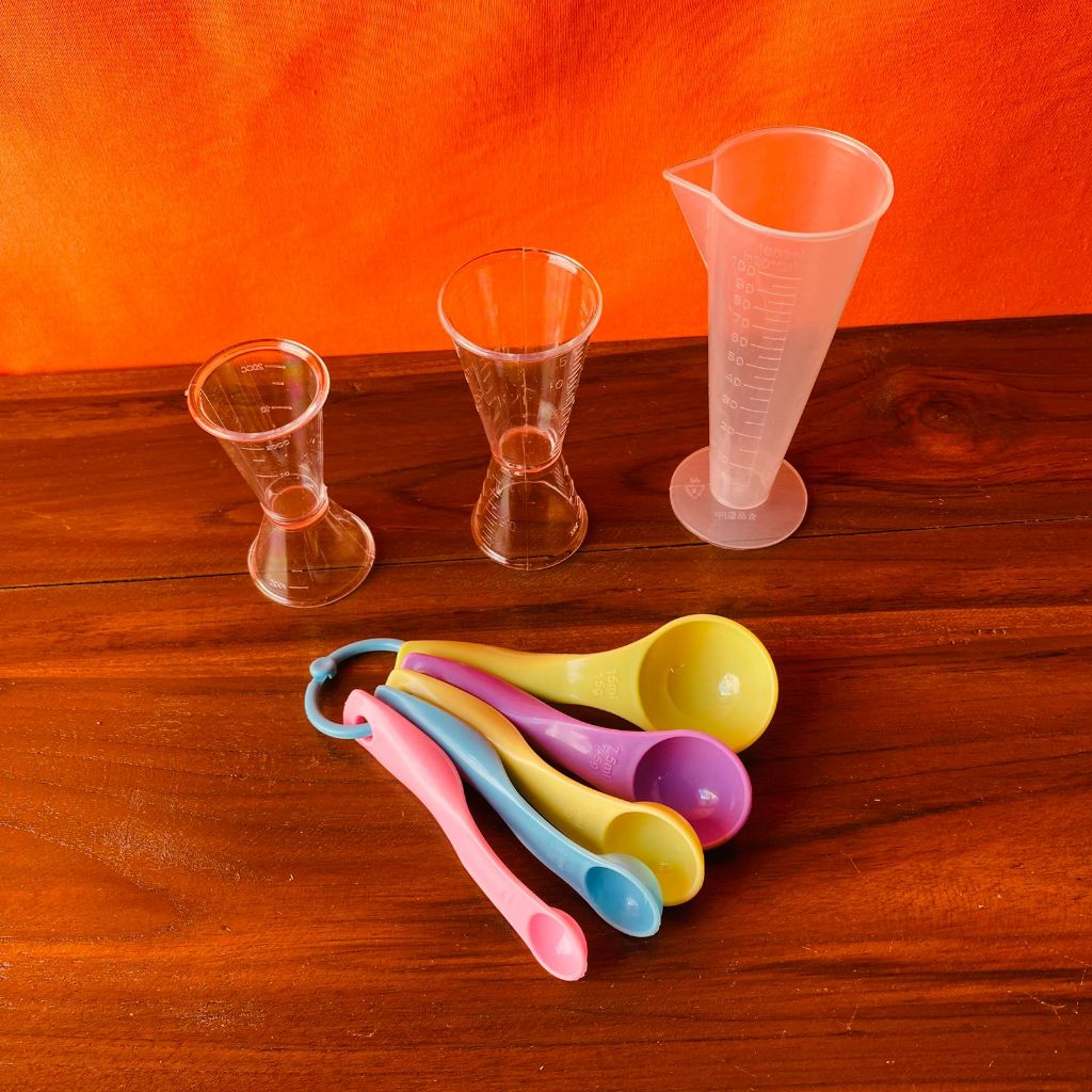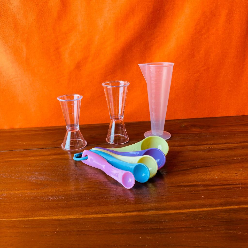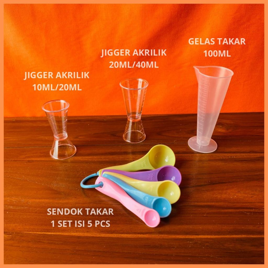 PAKET ALAT UKUR 1 SET | PAKET ALAT TAKAR 1 SET | GELAS TAKAR SENDOK TAKAR | JIGGER AKRILIK 10 ML 20 ML 40 ML GELAS TAKAR 100 ML | SENDOK TAKAR 1 SET