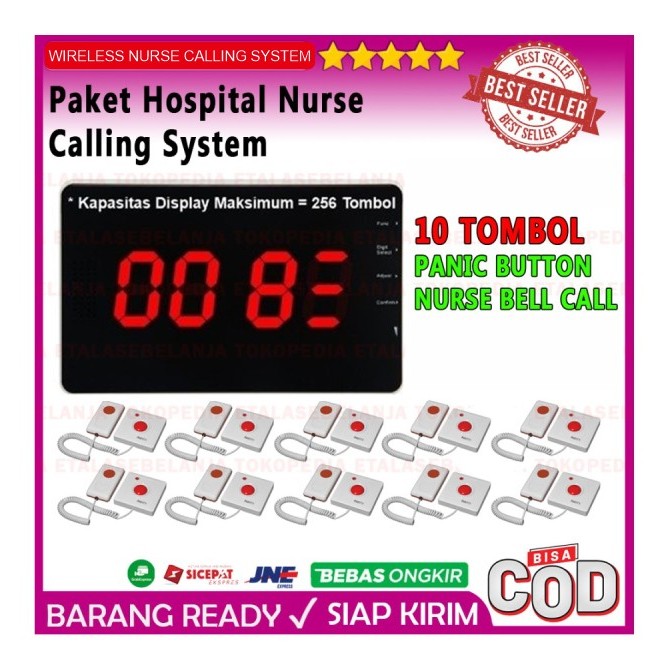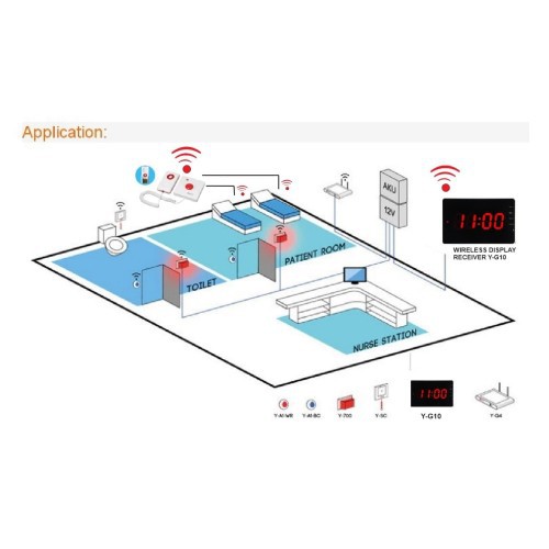 PAKET BEL PANGGIL SUSTER RUMAH SAKIT 10 TOMBOL Y-SW2-G33 DAN 1 MASTER DISPLAY RUANG JAGA PERAWAT POS SUSTER - MEEYI Y-G10C