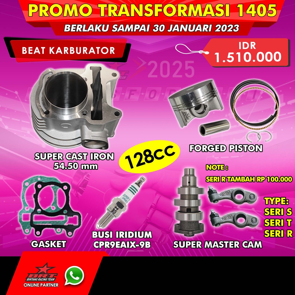 PAKET BLOK SUPER CAST IRON FORGED PISTON BORE UP 128 CC MASTERCAM ROCKER ARM BRT - BEAT KARBU