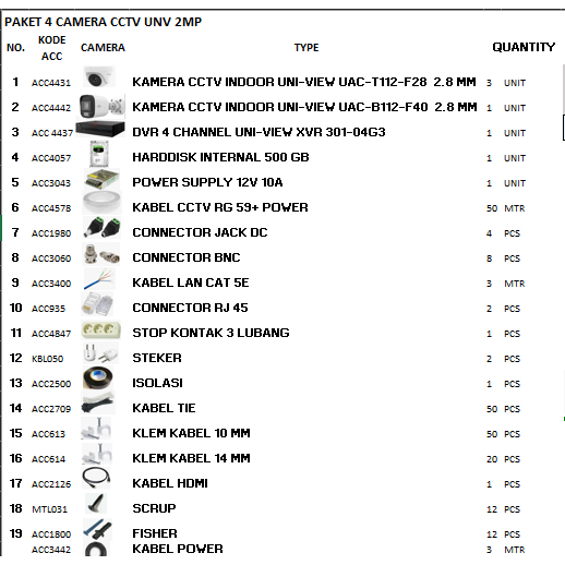 PAKET CAMERA CCTV 4 CHANNEL UNIVIEW 2MP