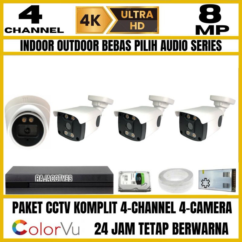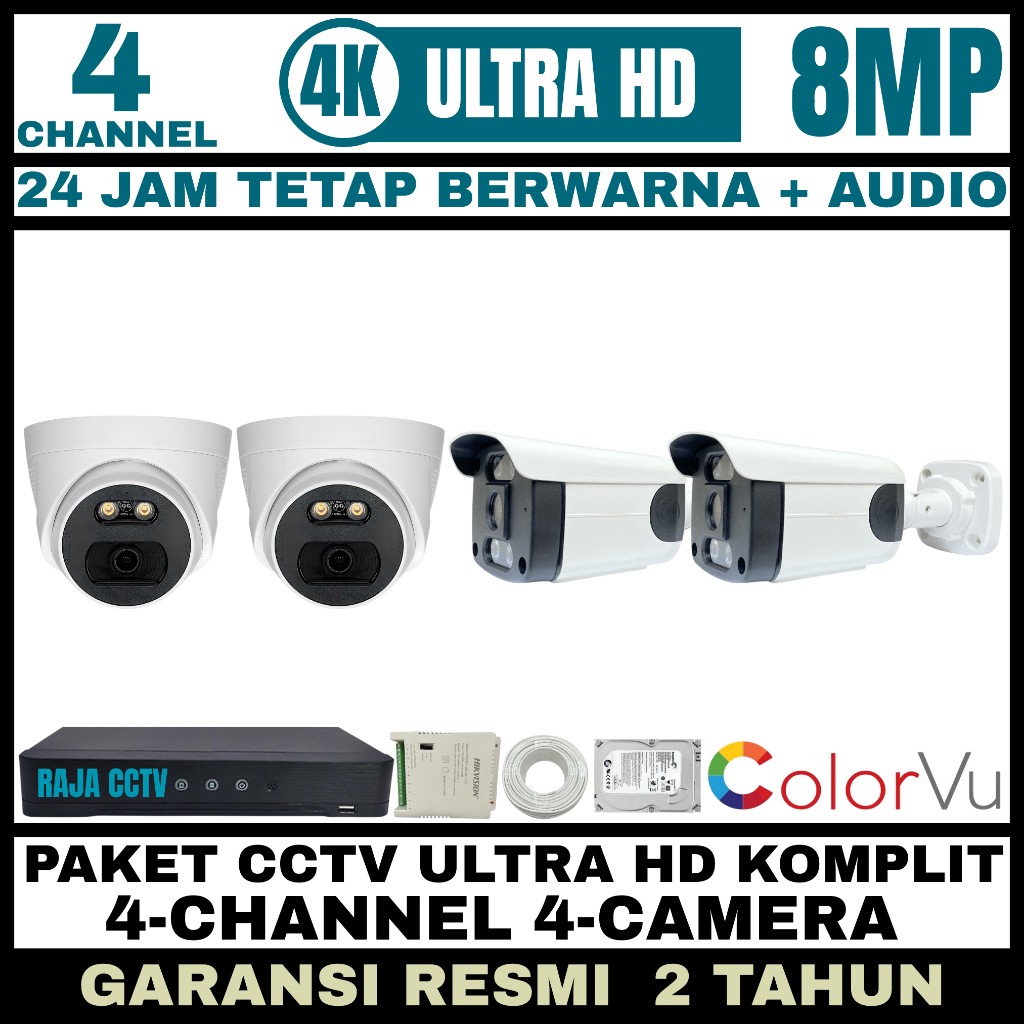 PAKET CCTV 8MP COLORVU COLORFUL 4 CHANNEL 4 KAMERA ULTRA HD 4K CAMERA AUDIO SERIES FULLCOLOR