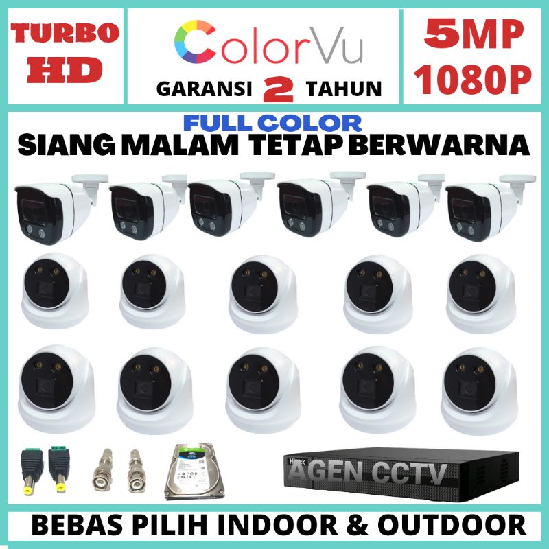 PAKET CCTV COLOR VU 16 CHANNEL 16 KAMERA LENSA 5MP 1080P IR SONY EXMOR BEBAS PILIH JENIS KAMERA INDOOR ATAU OUTDOOR