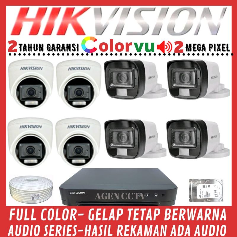 PAKET CCTV HIKVISION COLORVU 2MP 8 CHANNEL 8 KAMERA AUDIO FULL COLOR