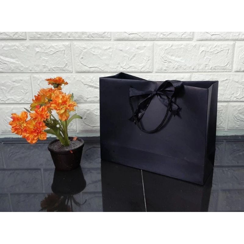[PAKET CUSTOM SABLON 50PCS] Cute Paperbag Hitam Uk. 22,5 x 8 x Tinggi 16,5 cm