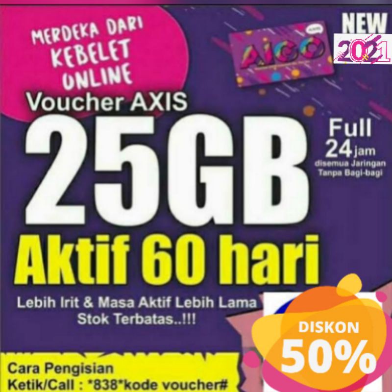 PAKET DATA KUOTA INTERNET AXIS AIGO BRONET 75GB 60 HARI SEMUA JARINGAN isi ulang kuota 75gb full 50gb 35gb 60hari
