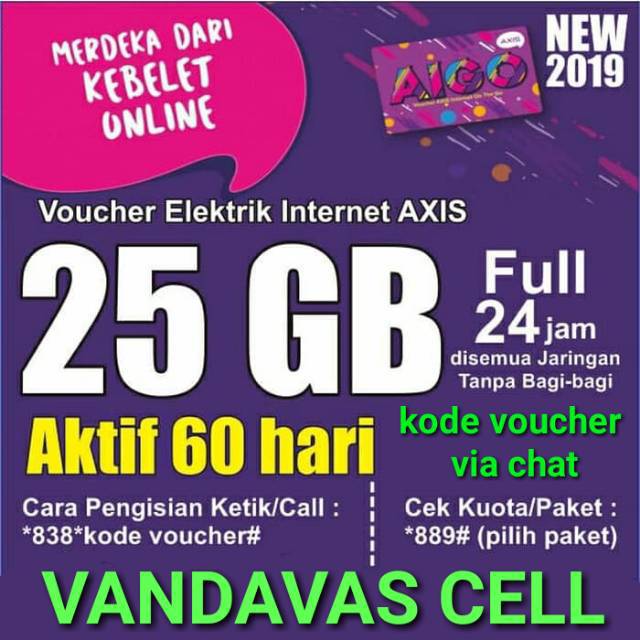 PAKET DATA KUOTA INTERNET AXIS BRONET VOUCHER AIGO 30GB 65GB 25GB 50GB 24JAM