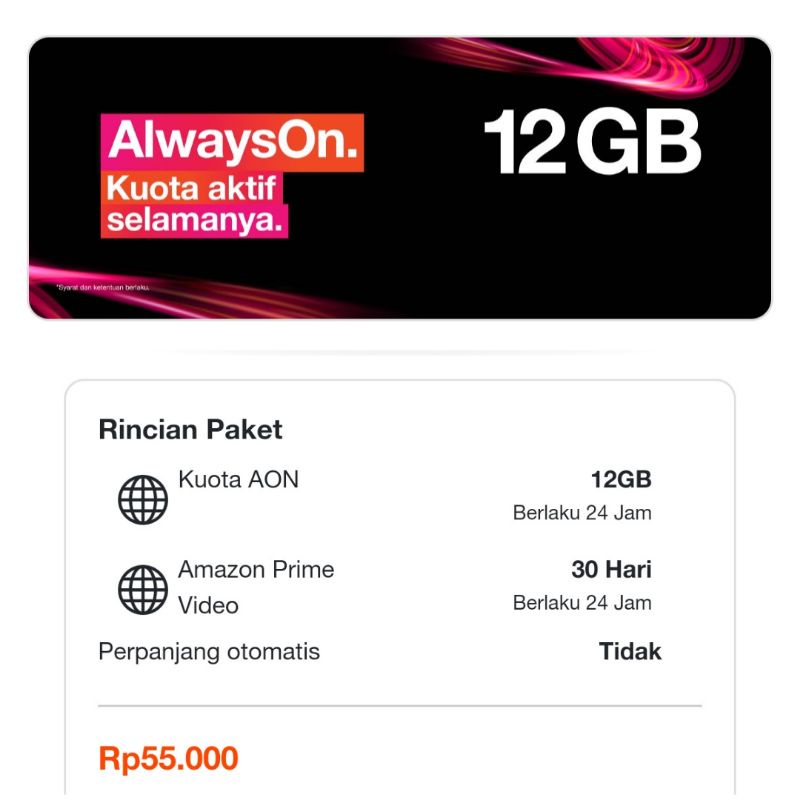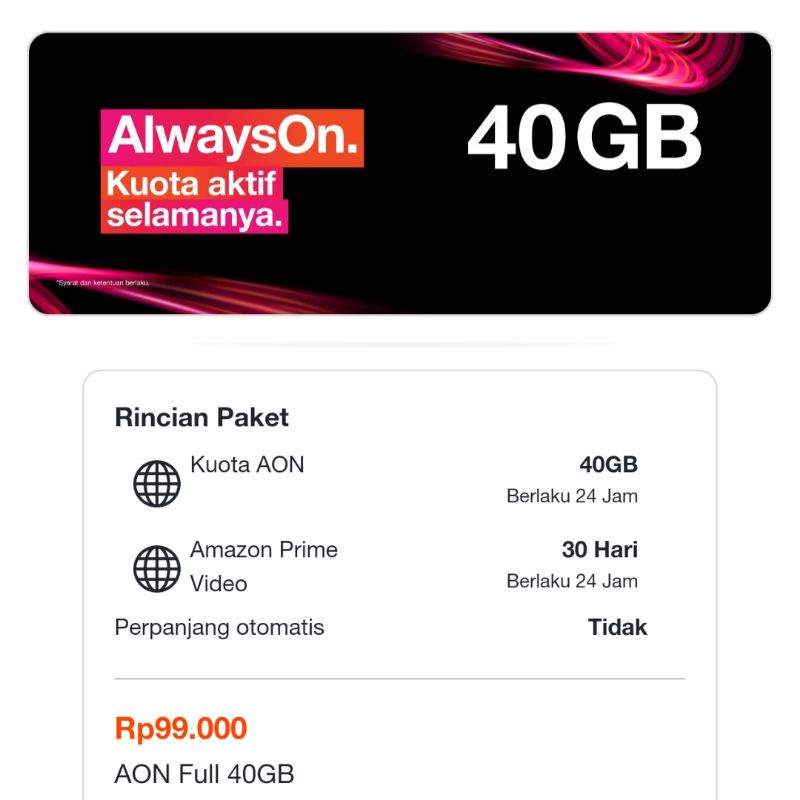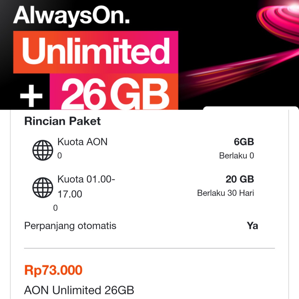PAKET DATA THREE NASIONAL AON & UNLIMITED YOUTUBE
