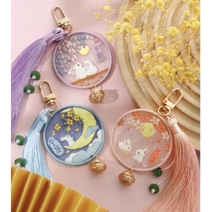 PAKET DIY KEYCHAIN MENYULAM EMBROIDERY DOUBLE SIDE GANTUNGAN KUNCI KEYCHAIN