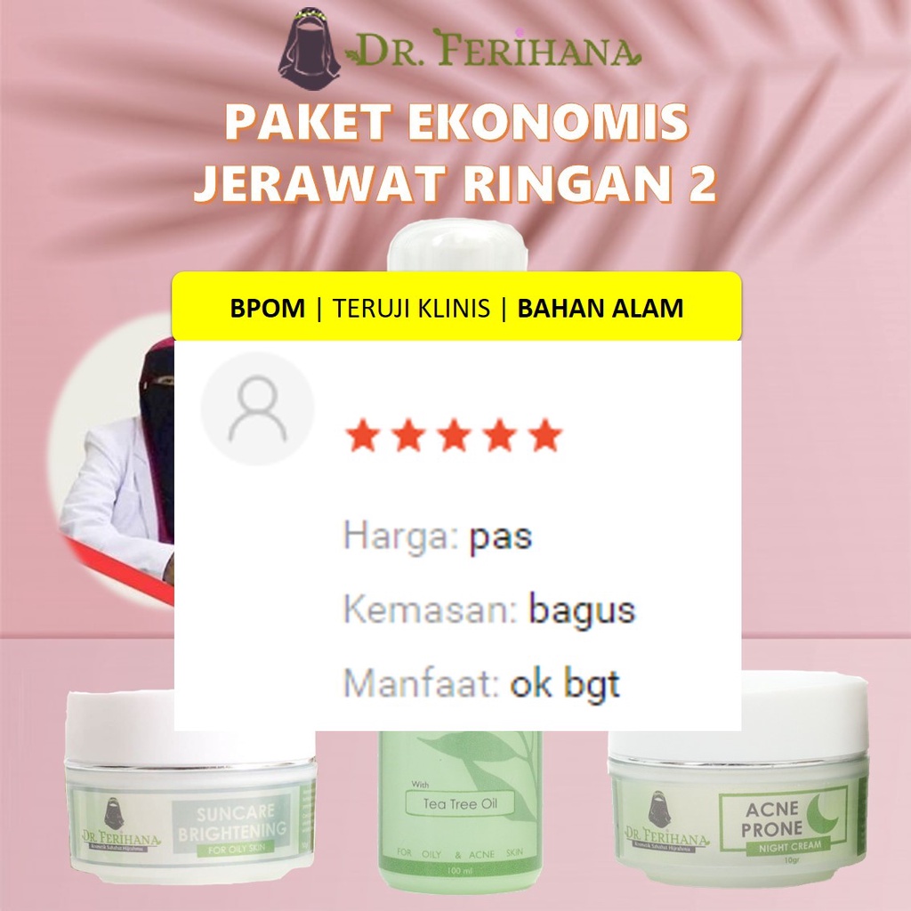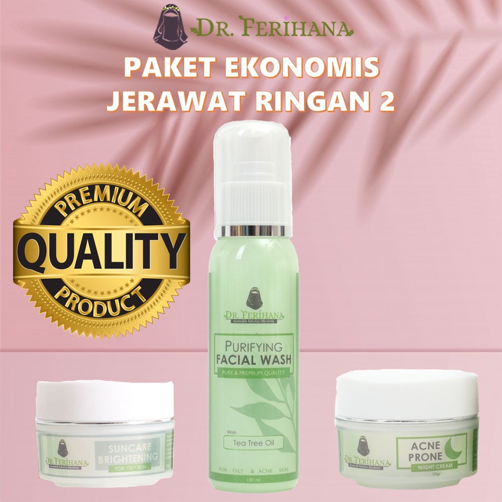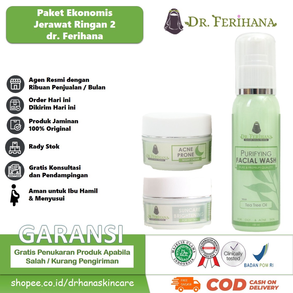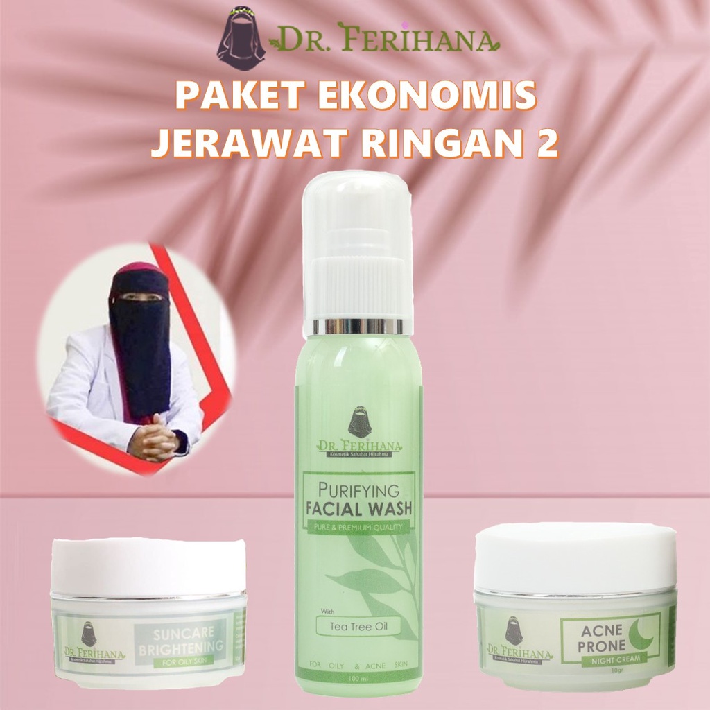 Paket Ekonomis Jerawat Ringan 2 dr. Ferihana Cosmetics & Skincare Merupakan Paket Perawatan Wajah untuk Kulit Berjerawat dan Berminyak yang Terdiri dari Facialwash Krim Siang SPF 33 Krim Malam