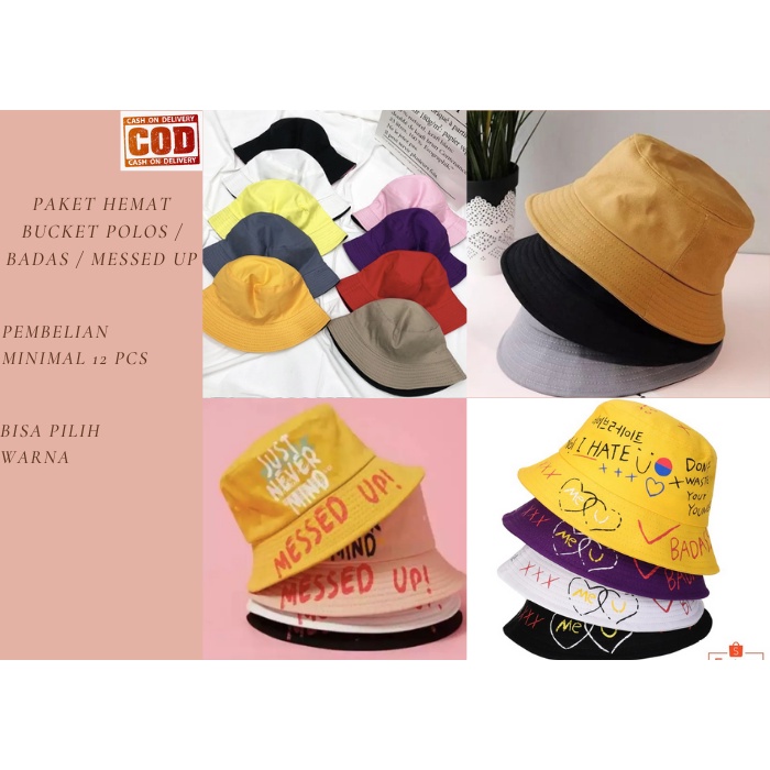 PAKET HEMAT KHUSUS RESELLER BUCKET HAT POLOS / BUCKET BADAS / BUCKET MESSED UP BOLAK BALIK