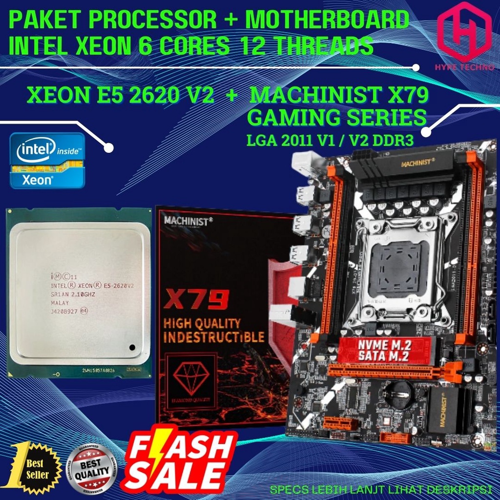 PAKET INTEL 6 CORES 12 THREADS XEON E5 2620 V2 + MOTHERBOARD X79 baru segel, all product best quality selected product