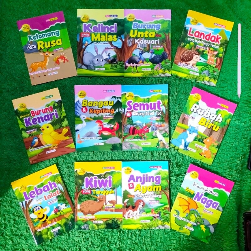 PAKET ISI 12 BUKU CERITA ANAK DAN DONGENG KEANGKUHAN NAGA ANJING AYAM KIWI YANG TANGGUH LEBAH LALAT RUBAH BIRU SEMUT KAKAK TUA BANGAU KEPITING NASEHAT BURUNG KENARI LANDAK UNTA KASUARI KELINCI MALAS KELOMANG RUSA