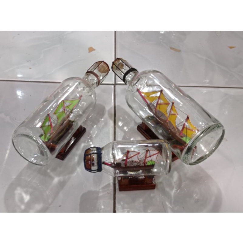 PAKET ISI 3 KAPAL PINISI DALAM BOTOL KAPAL PINISI BOTOL UKURAN S. M. L BESAR