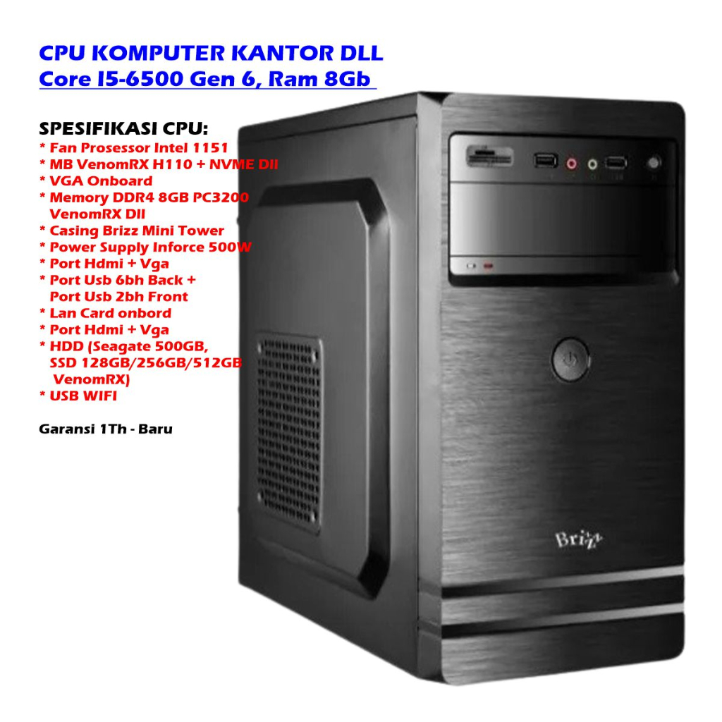 PAKET KOMPUTER KANTOR CORE I5-6500 GEN 6 + LED LG WIDE KEYBOARD MOUSE LOGITECH, CPU KOMPUTER KANTOR CORE I5-6500 RAM 8GB - PAKET KOMPUTER RAKITAN KANTOR/SEKOLAH/KERJA CORE I5-6500 GEN 6 SOCKET 1151 DDR4 8GB