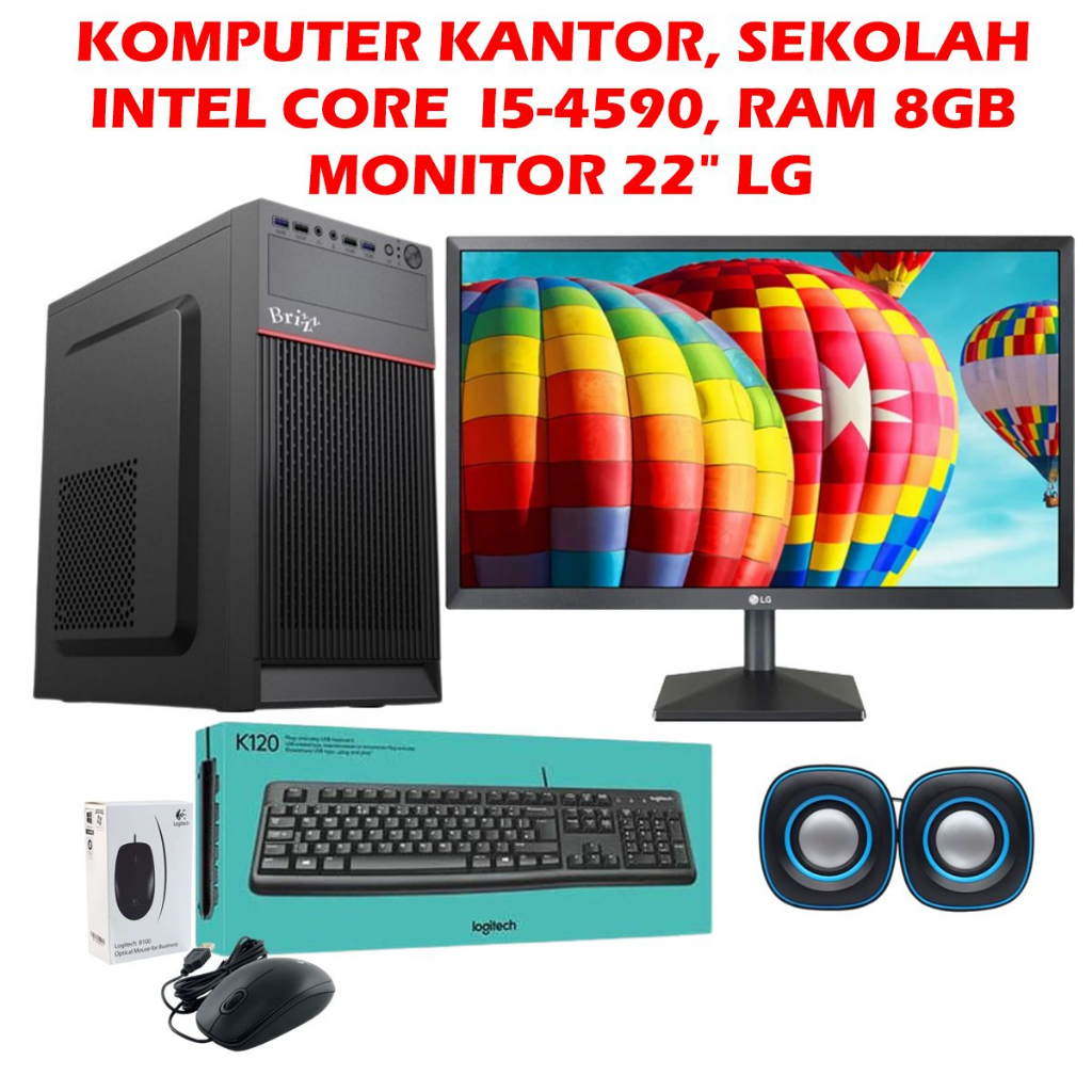 PAKET KOMPUTER KANTOR INTEL CORE I5-4590 RAM 8GB MONITOR MONITOR LG/SAMSUNG/INFORCE/PIXEL WIDE KEYBOARD MOUSE LOGITECH, PAKET KOMPUTER RAKITAN CORE I5-4590 + MONITOR LG WIDE GARANSI 1 TAHUN PAKET KOMPUTER RAKITAN CORE I5-4590 + MONITOR LG WIDE PC RAKITAN