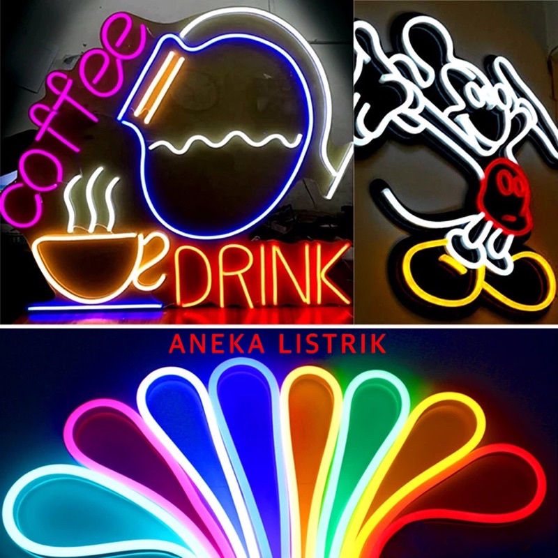 PAKET LAMPU STRIP LED NEON FLEX 360 BULAT WATERPROOF / NEON FLEX 360 DERAJAT OUTDOOR / LAMPU PLAFON KAMAR HIAS LAMPU CAFE LED HURUF