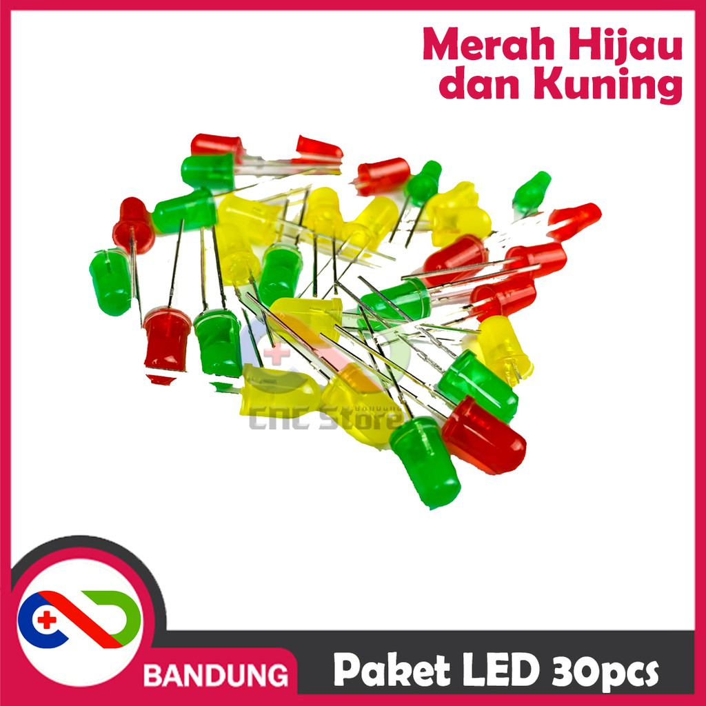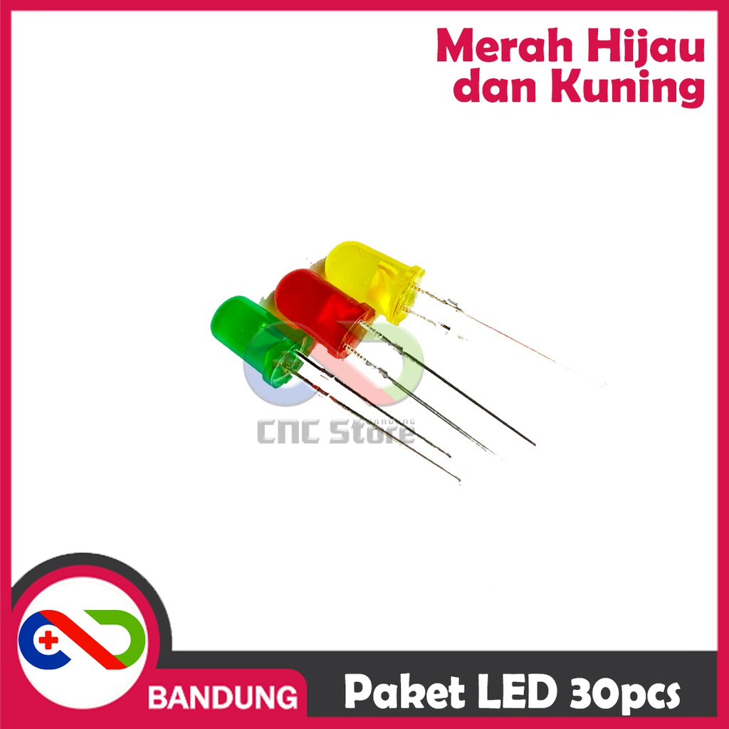 PAKET LED 5MM DIFFUSED 30PCS MERAH KUNING HIJAU